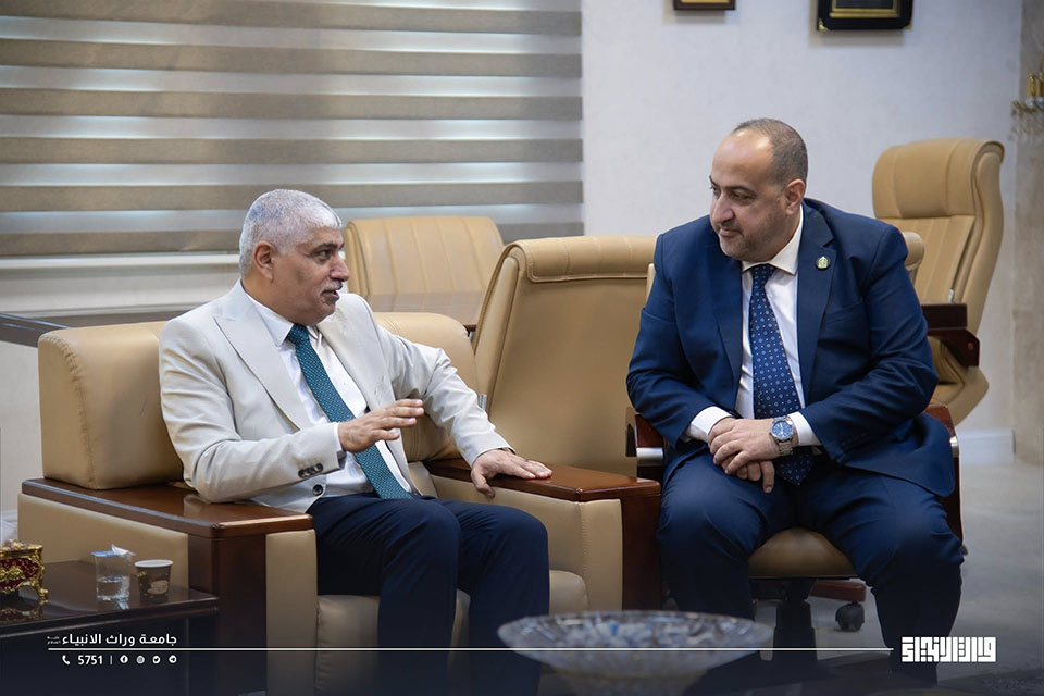 في إطار تعزيز الشراكة في التعليم الطبي، استقبل الأستاذ الدكتور إبراهيم سعيد الحياوي، رئيس جامعة وارث الأنبياء (عليه السلام)، برفقة عميد كلية الطب، وفدًا رسميًا من كلية طب حمورابي – جامعة بابل، برئاسة الأستاذ الدكتور هادي الموسوي، عميد الكلية.