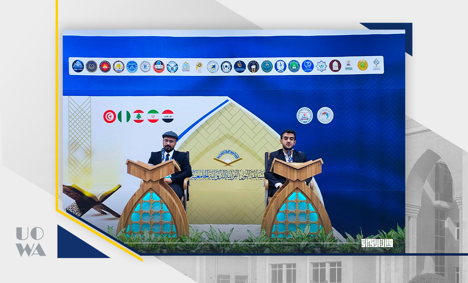 وجاءت مشاركة الجامعة عبر قسم النشاطات الطلابية، مُمثّلةً بالطالب محمد حسن شمران من كلية الطب (حافظ القرآن الكريم)، والطالب جعفر إسماعيل من كلية العلوم الإسلامية (قارئ القرآن الكريم)، حيث قدّما أداءً متميزاً نال إعجاب لجان التحكيم والحضور.