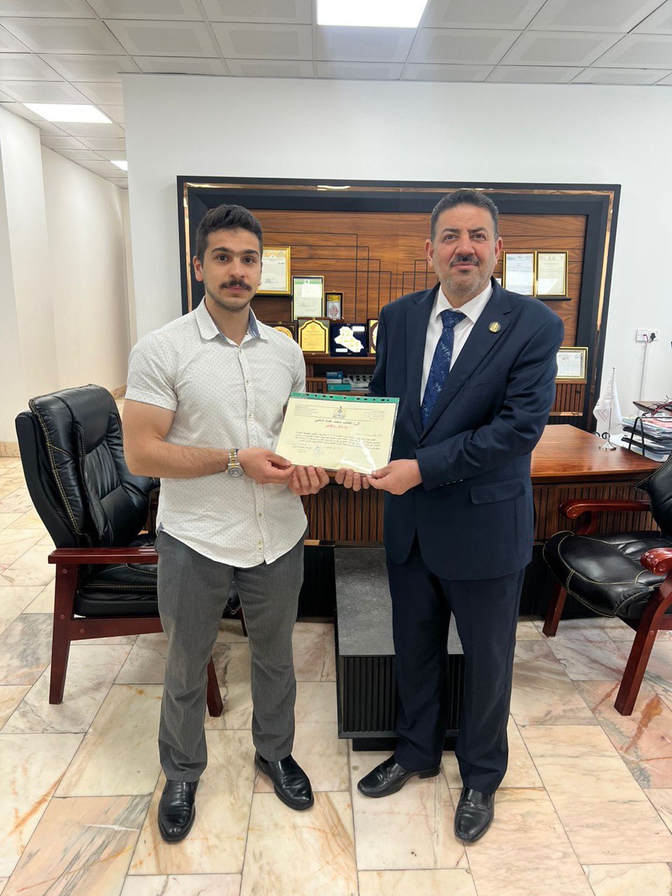 كرّمت عمادة الكلية الطالب محمد عماد شاني تقديرًا لمشاركته الفاعلة في إقامة الندوة العلمية الموسومة «الدعم النفسي لدى مرضى الاكتئاب».
