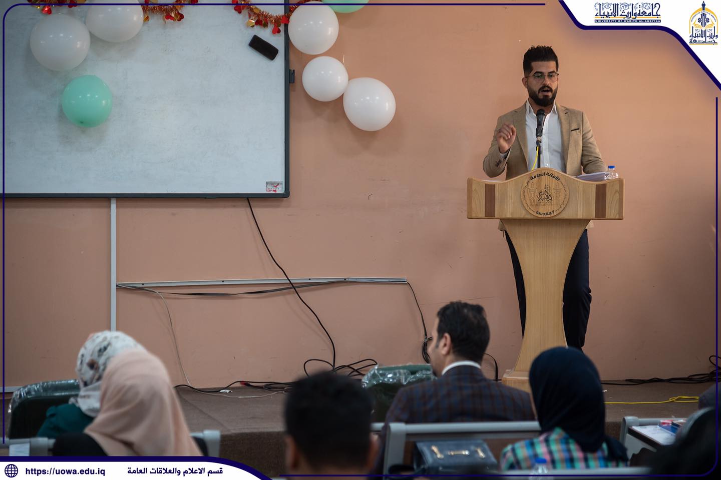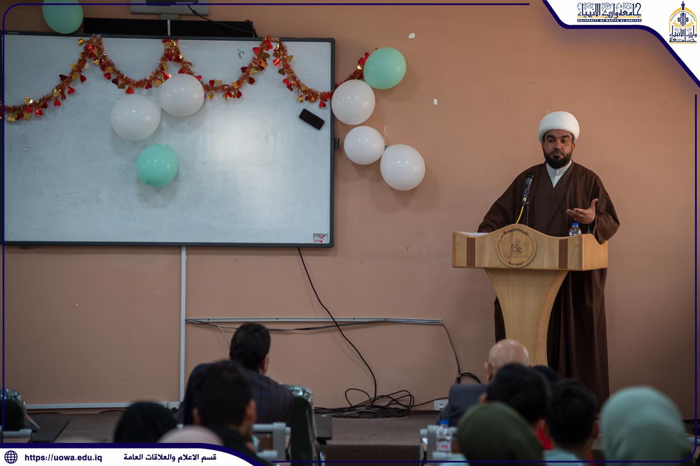 جانب من احتفالية كلية الادارة والاقتصاد في جامعة وارث الانبياء(عليه السلام) بذكرى ولادة الامام المهدي(عج)، تخللها مشاركات شعرية وقصائد بحب آل البيت القاها طلبة الكلية فضلاً عن محاضرة توعوية قدمها الشيخ الدكتور ستار عويد من كلية العلوم الاسلامية في الجامعة.