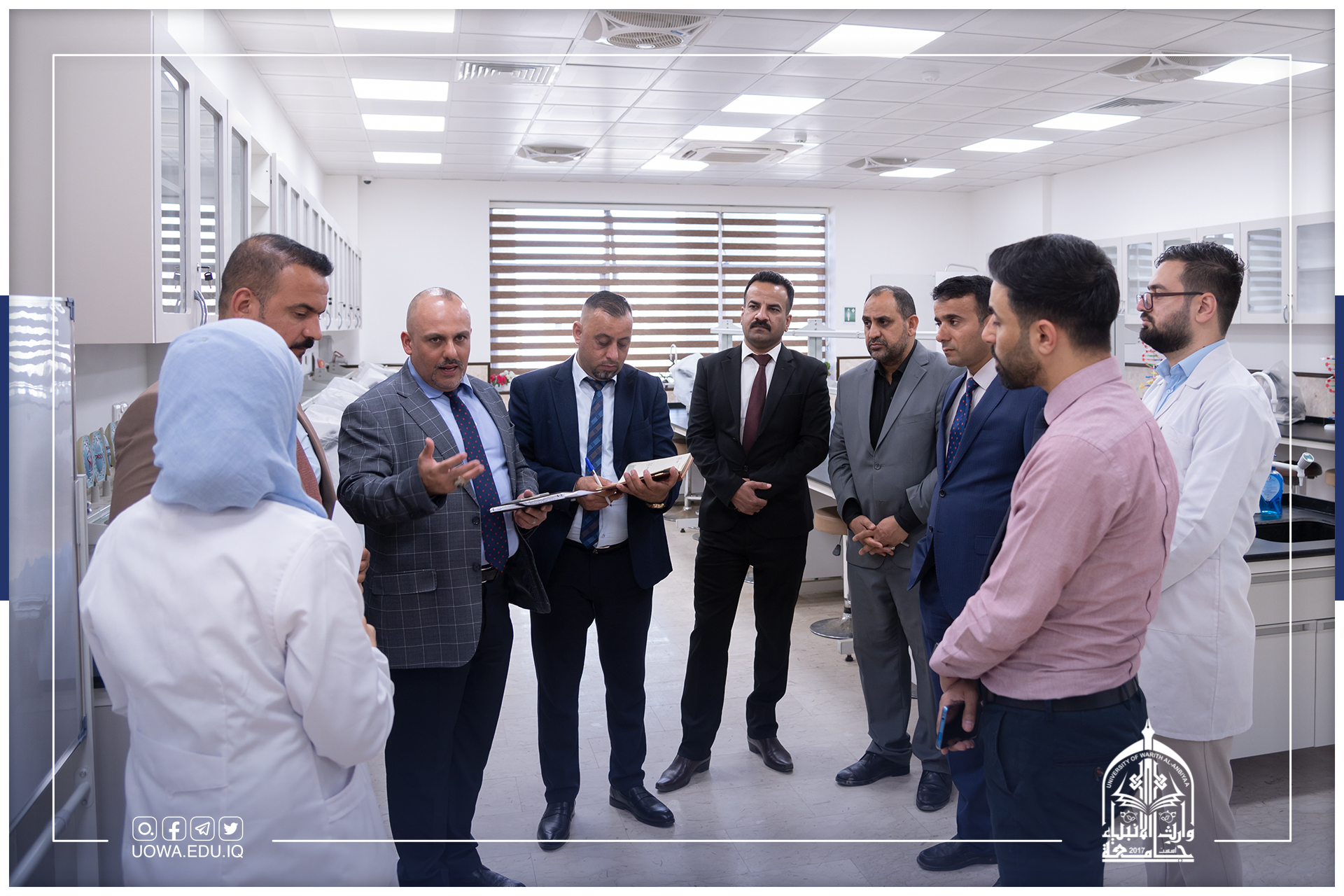 وتفقد الوفد المختبرات العلمية للجامعة بهدف تنفيذ برنامج تقييم اجراءات وتدابير الامن والسلامة البايلوجية في المختبرات والمواقع ذات الصلة بالانشطة البايلوجية لغرض تنفيذ قانون هيئة الرقابة الوطنية .