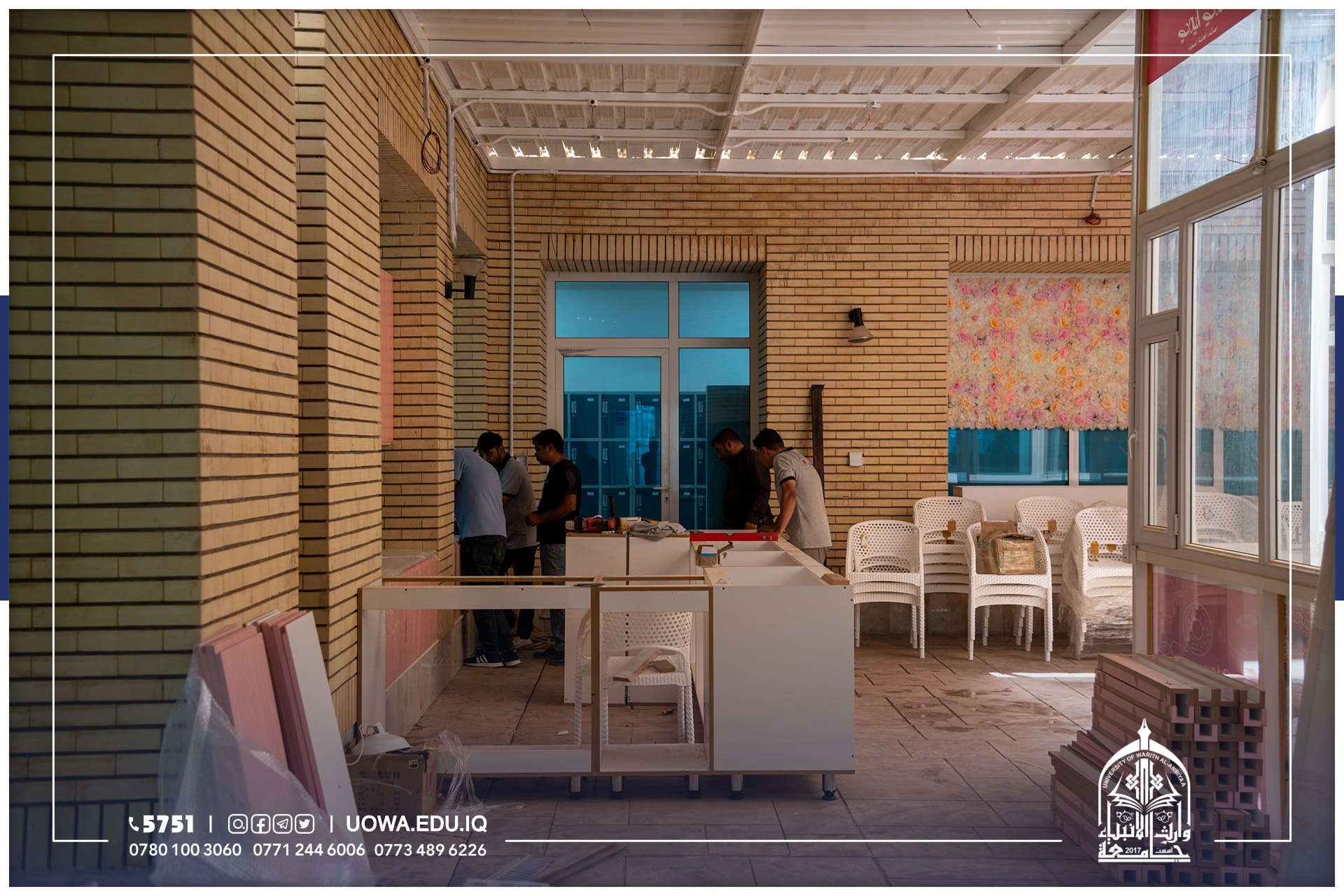اللمسات النهائية لافتتاح الناديان الطلابيان الجديدان في جامعة وارث الانبياء(عليه السلام) ضمن سلسة نوادي حديثة يتم انشائها في الايام القادمة، والعمل مستمر لاعادة تأهيل النادي الطلابي الرئيسي قبل بدء العام الدراسي الجديد.