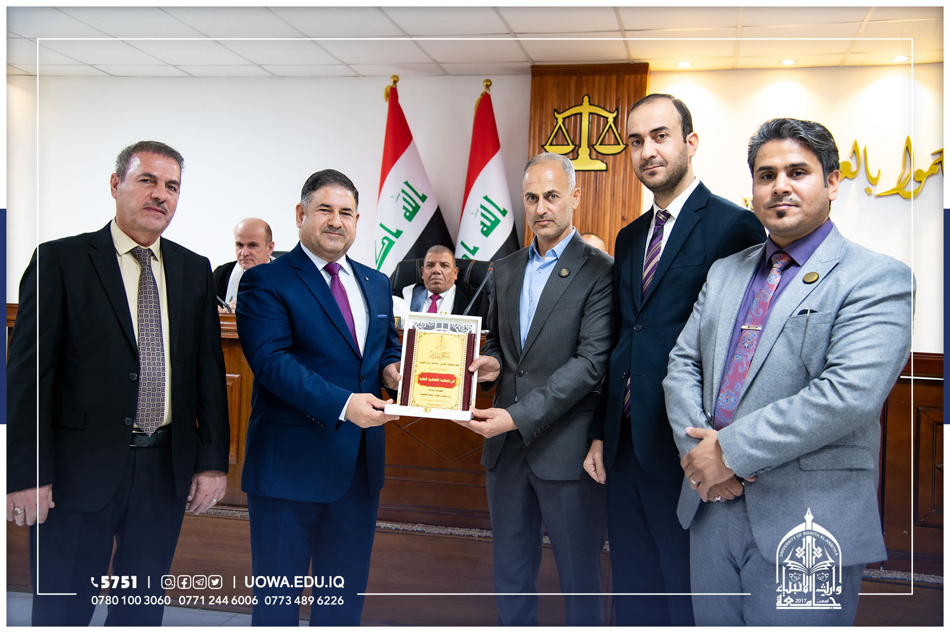 ومن جانبه قدم وفد عمادة كلية القانون متمثلة بالدكتور فلاح حسن عطية معاون العميد، درع كلية القانون الى رئيس المحكمة الاتحادية و الشكر والتقدير لاعضاء المحكمة وملاكاتها لما قدموه من اضافات معرفية.
