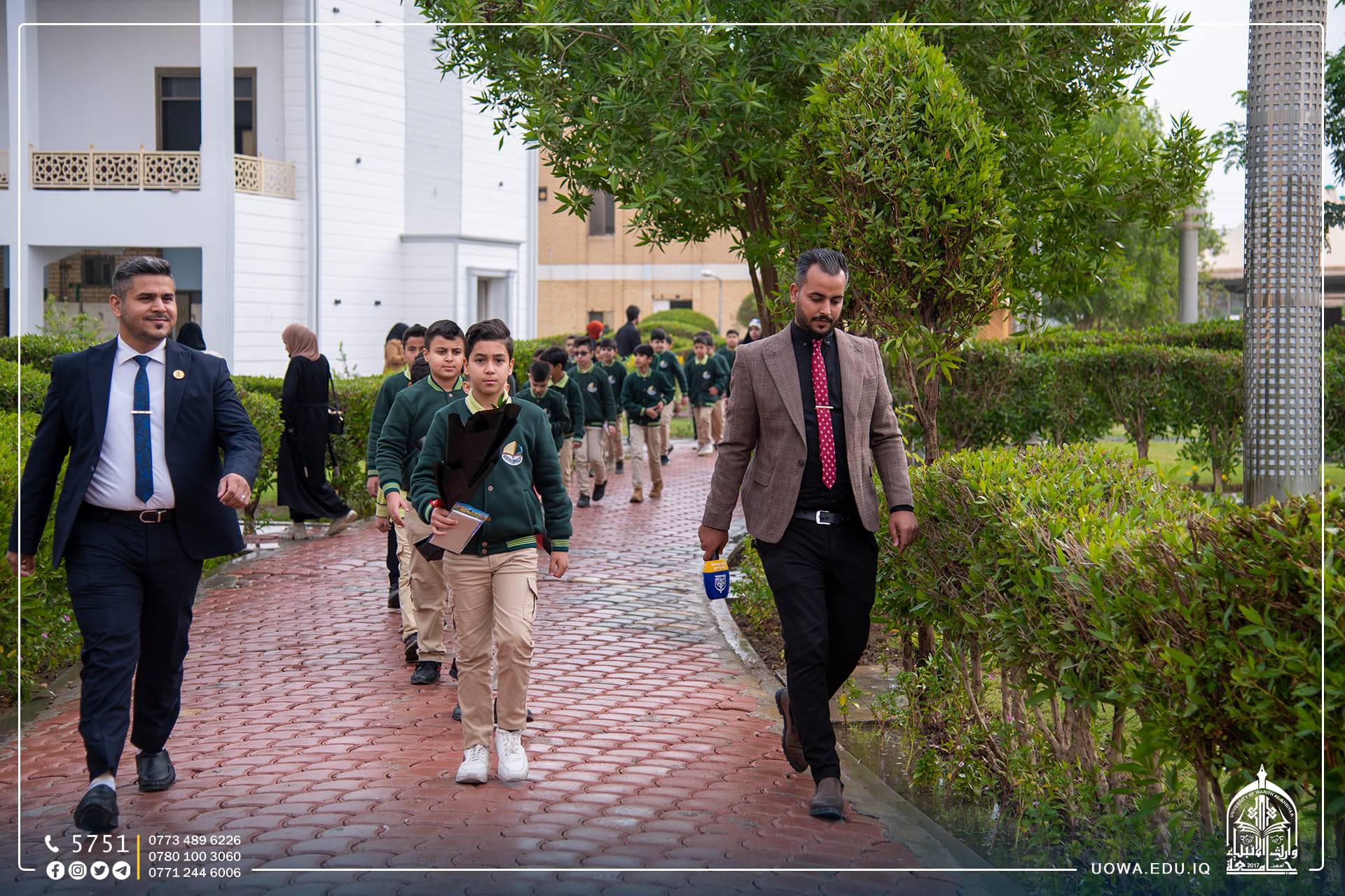استقبلت جامعة وارث الأنبياء (عليه السلام) عدد من طلبة مرحلة الخامس الابتدائي في مدرسة الق الوارث الابتدائية التابعة للعتبة الحسينية المقدسة، وتجول الطلبة في أروقة الجامعة وكلية التمريض واطلعوا على المختبرات العلمية فيها، وتم تقديم شرح مختصر عن مختبر الكيمياء والتشريح، إذ تساهم هذه الرحلات في تنمية مهارات الطلبة، وفي نهاية السفرة خط الطلبة رسائل شكر الى الجامعة بأناملهم اليافعة، عبروا من خلالها عن التفاصيل الجميل التي شاهدوها في الجامعة بأنامل بريئة .