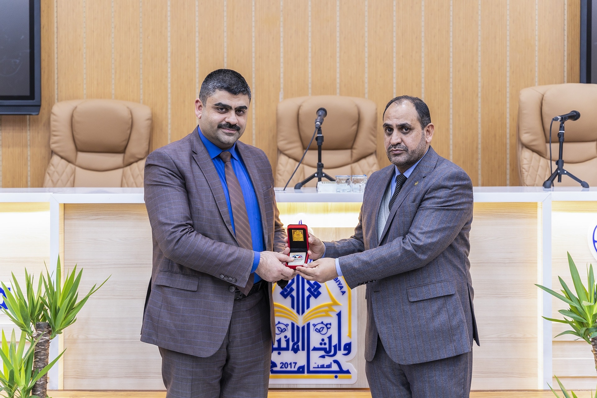 جانب مصور من الجلسة المسائية "للمؤتمر الوطني الاول" الذي اقامته جامعة وارث الانبياء(عليه السلام)/ كلية العلوم الإسلامية، وبالتعاون مع قسم تطوير الموارد البشرية" والذي تضمن ٥٣ بحث علمي فازت منها خمسة بحوث، وتم تكريمهم بدرع التميز اما بقية البحوث فتم تكريمهم بجوائز أخرى.
