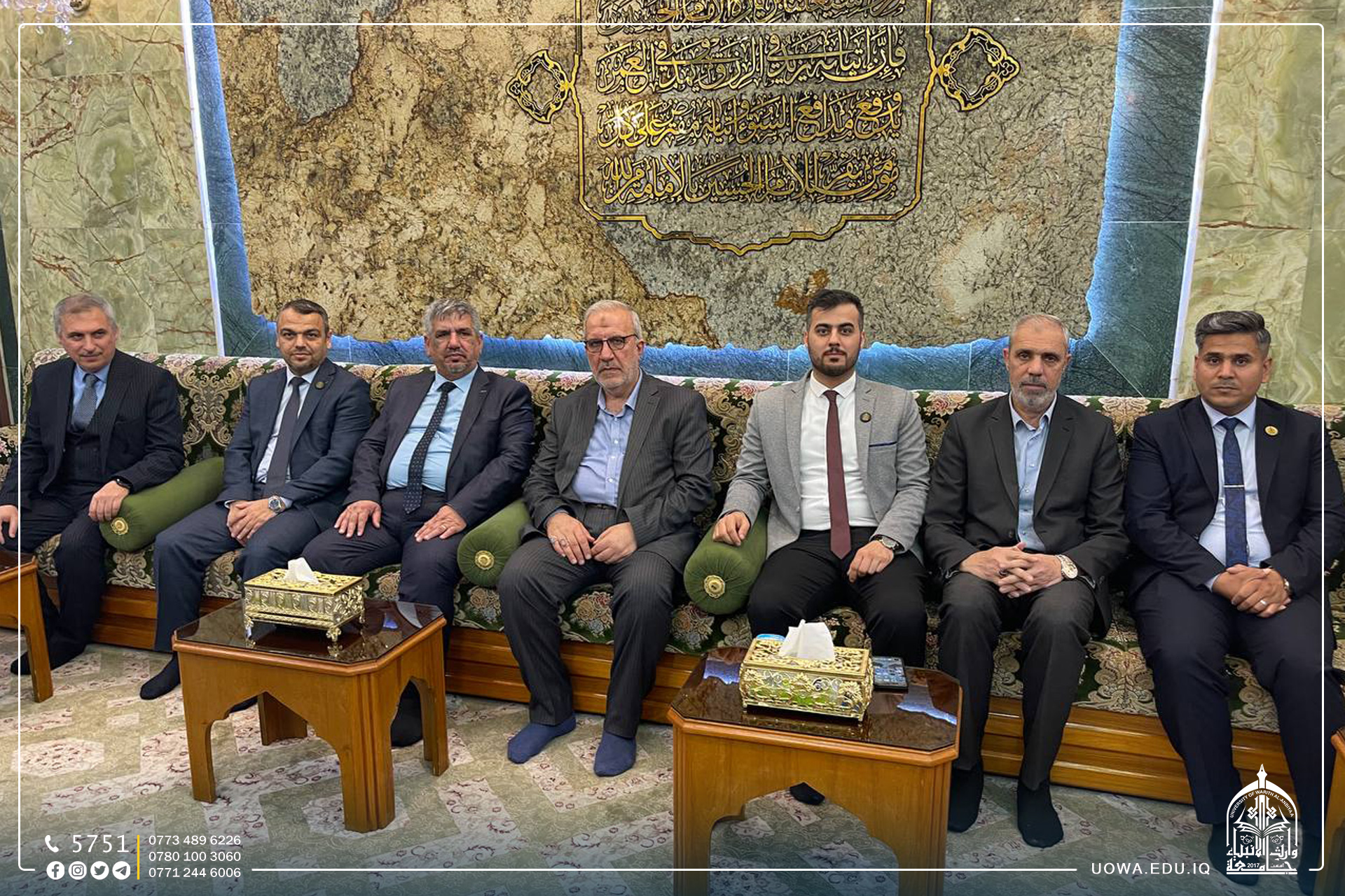تشرف وفد جامعة السليمانية، بزيارة المتولي الشرعي للعتبة الحسينية المقدسة سماحة الشيخ عبد المهدي الكربلائي (دام عزه)، وجناب الامين العام الاستاذ حسن رشيد العبايجي (دام توفيقه) برفقة السيد رئيس الجامعة الاستاذ الدكتور ابراهيم الحياوي .