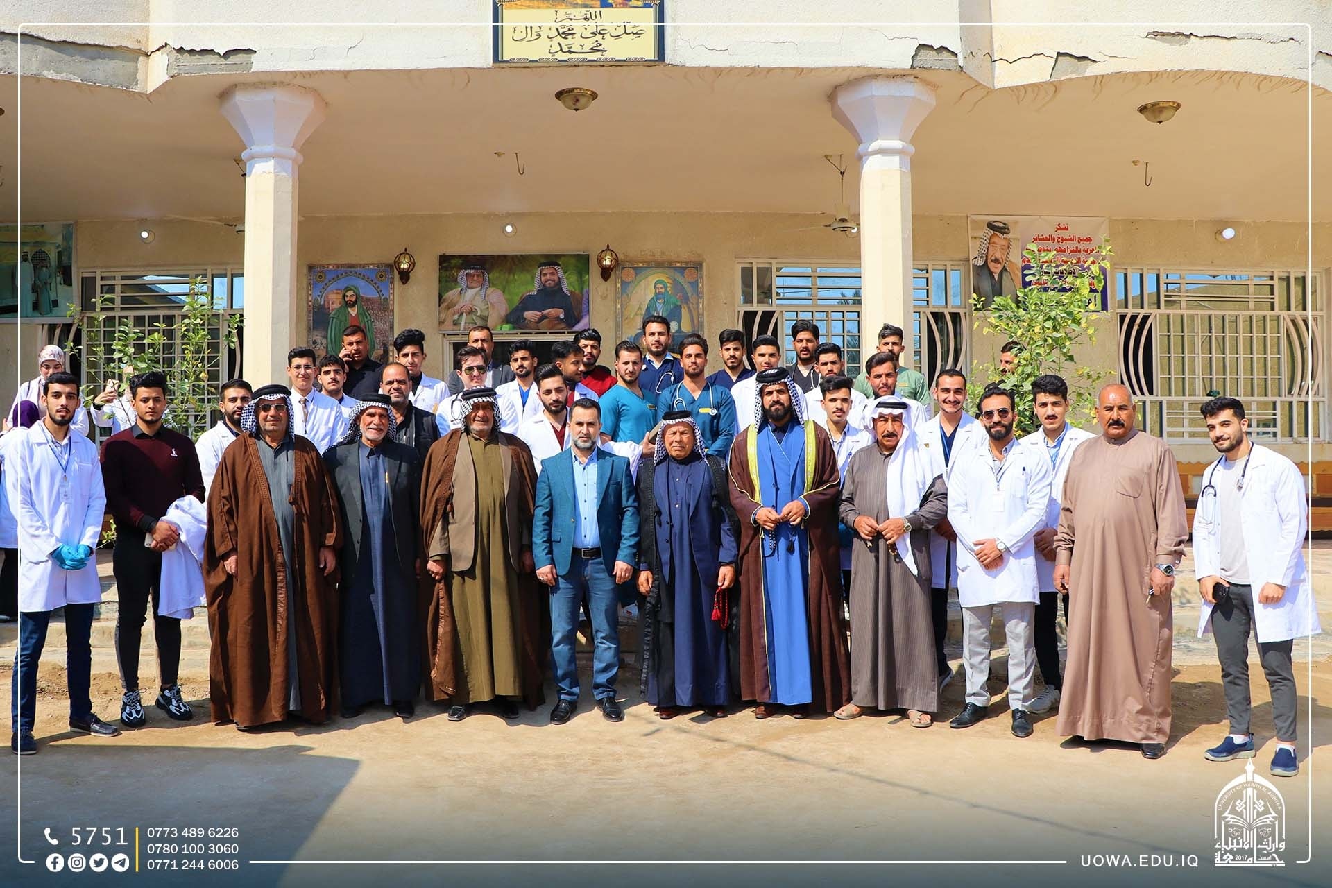ضمن مبادرة "بركات الانوار المحمدية" التي اطلقتها هيئة الصحة والتعليم الجامعي في العتبة الحسينية المقدسة بمناسبة الولادات الشعبانية المباركة، اقامت كلية الطب بالتعاون مع كلية التمريض في جامعة وارث الانبياء(عليه السلام)، جولة ميدانية للقرى في اطراف محافظة كربلاء المقدسة بإشراف عمادة كلية الطب لتقديم الدعم الطبي لساكني هذه القرى و الاستشارات الطبية لهم.