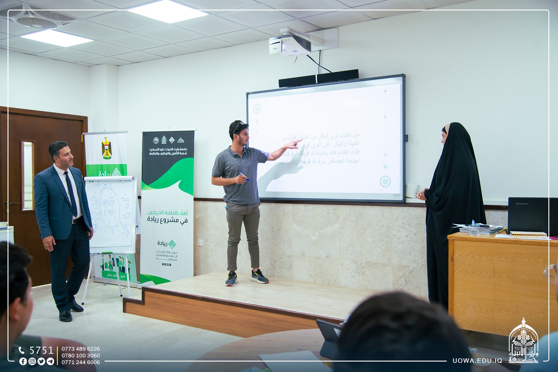 استمرار الدورات التدريبية (الدورة الخامسة) التي تقيمها جامعة وارث الانبياء(عليه السلام)/ شعبة التأهيل والتوظيف  ضمن مبادرة"ريادة" الحكومية التي تهدف إلى دعم مشاريع الطلاب والخريجين، بمشاركة المدربين صفاء السيلاوي وفاطمة الكاصد،  و تنظيم هذه الدورة بشكل دائم على مدار أسبوعين في الشهر.