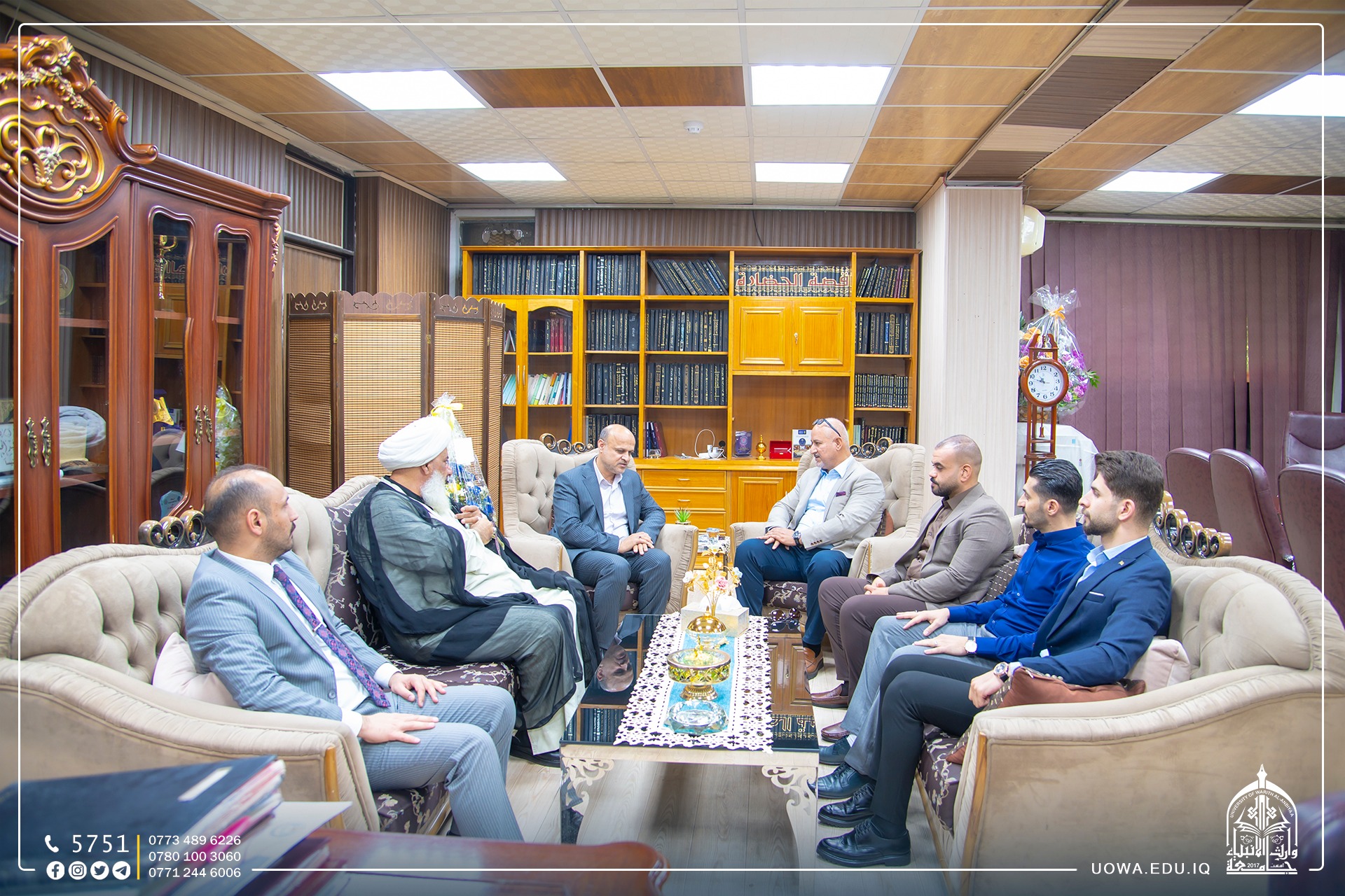 وتضمنت الزيارة جولة ميدانية مشتركة للقاعات الدراسية والمكتبة وبنايات الكلية الاخرى للاطلاع على الواقع التدريسي والعلمي في الكلية.