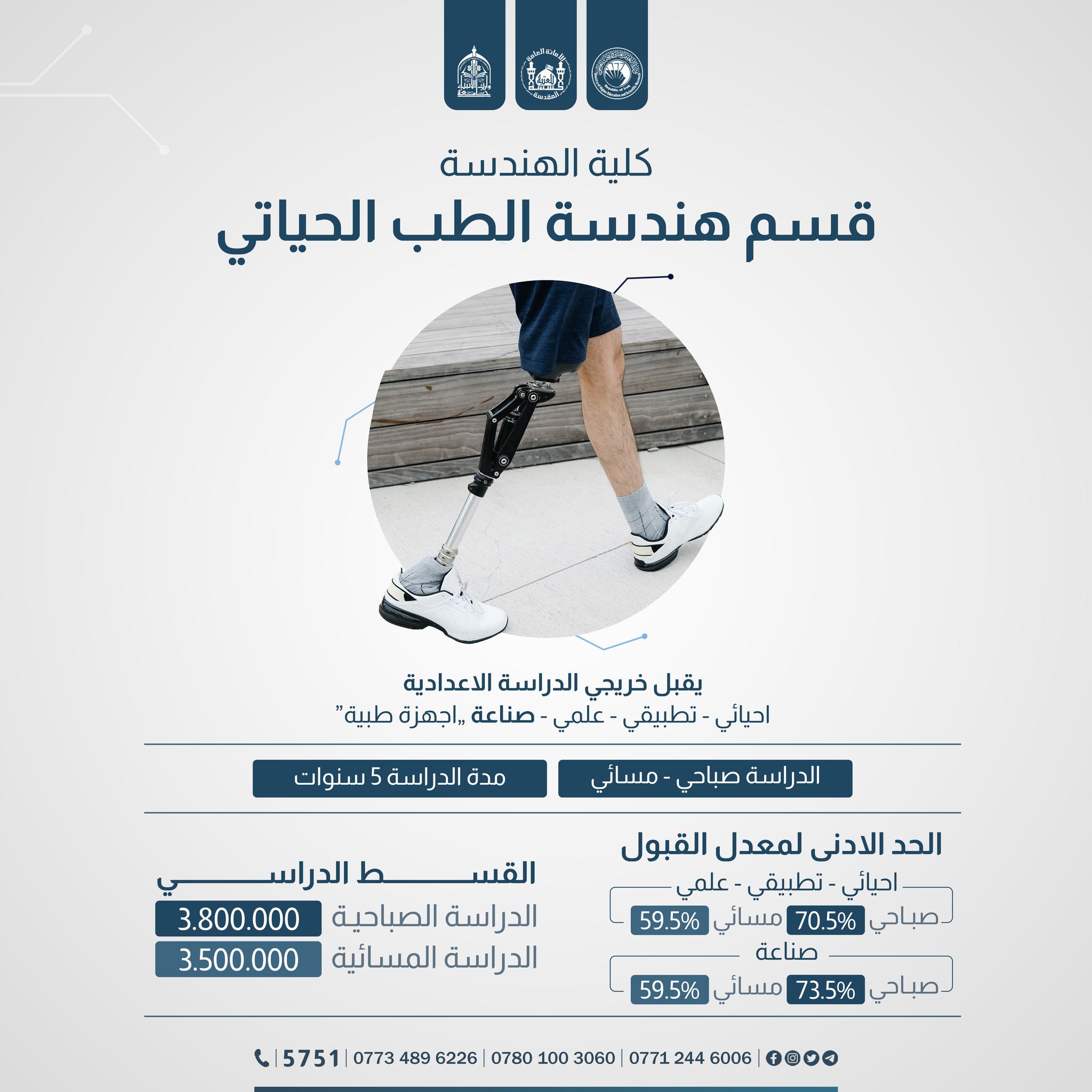 الى الطلبة الإعزاء الراغبين بالتقديم على كليةالهندسة في جامعة وارث الانبياء(عليه السلام) تعرفوا على آخر التحديثات في المعدلات والمدخلات خلال الأسبوع الأخير من الفترة الرسمية للتسجيل.