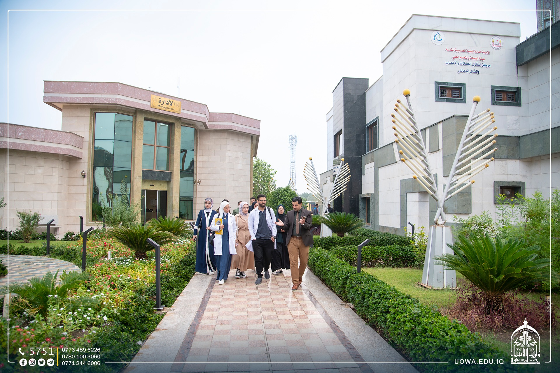 اجرى طلبة كلية الطب في جامعة وارث الانبياء(عليه السلام) برفقة السادة اعضاء هيئة التدريس زيارة علمية الى مركز "اعتلال الاعصاب والشلل الدماغي" التابع للعتبة الحسينية المقدسة، حيث قدم مدير المركز شرحا عن المركز وأقسامه، والأجهزة المتوفرة فيه.