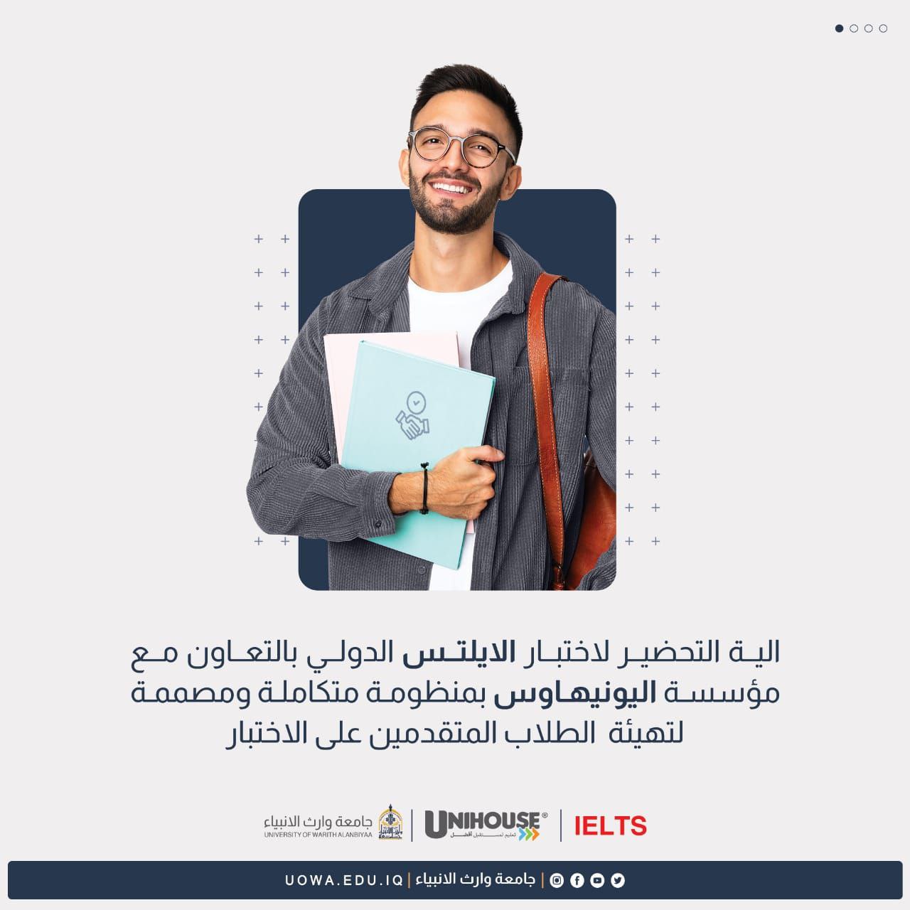 تطُلق جامعة وارث الأنبياء(عليه السلام)، وبالتعاون مع "مؤسسة UniHouse البريطانية" برامجها التدريبية للإستعداد لإختبار IELTS من قبل مدربين محترفين وعالميين معتمدين IELTS الدولية.