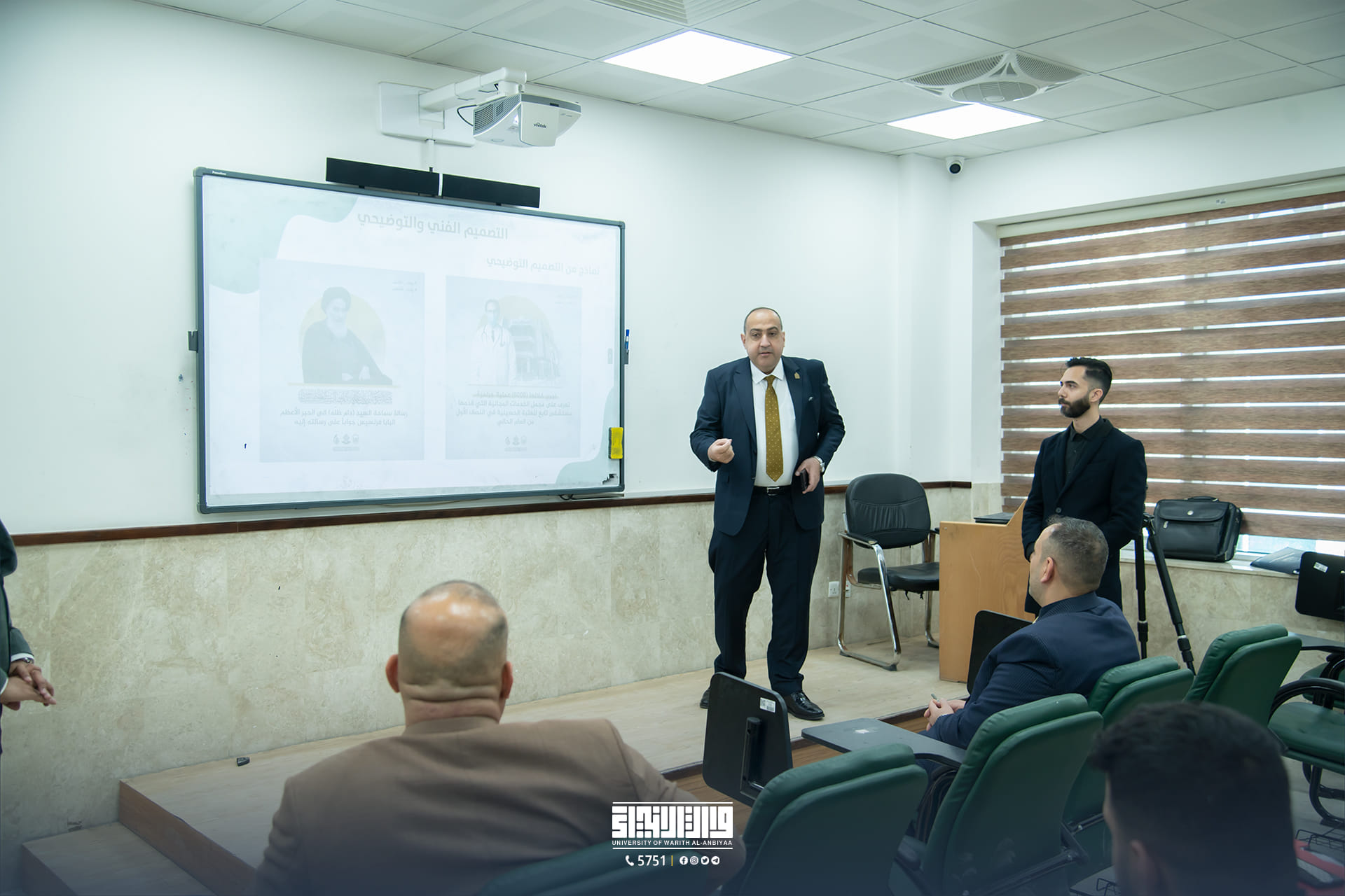 بحضور السيد رئيس الجامعة الاستاذ الدكتور ابراهيم الحياوي، وعميد الكلية الدكتور محمد جمال الطيف، أقامت  كلية الإعلام/قسم الإعلام الرقمي، وبالتعاون مع قسم الإعلام في العتبة الحسينية المقدسة، ورشة علمية بعنوان" التصميم الرقمي باستخدام تقنيات الذكاء الاصطناعي " قدمها المصمم أسامة عدنان الخياط من إعلام العتبة الحسينية المقدسة.
