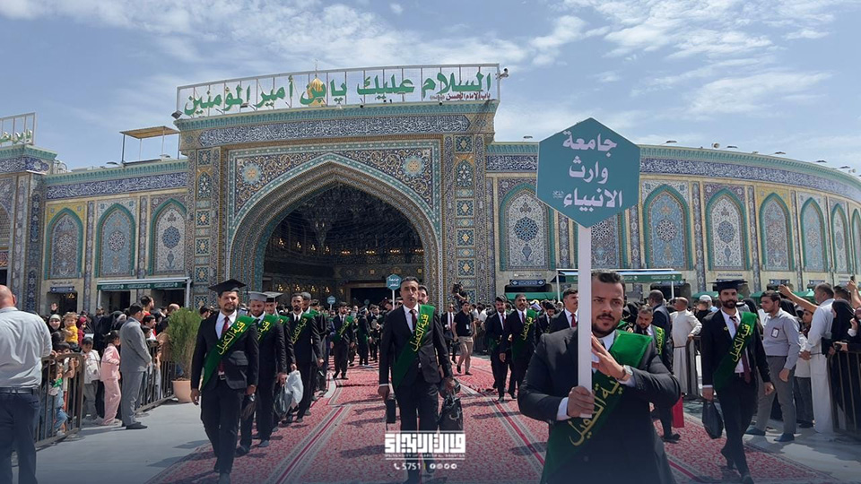 أُعداد من طلبة جامعة وارث الأنبياء (عليه السلام) يشاركون بفخر وحماس في فعاليات الحفل المركزي الرابع لتخرج طلبة الجامعات العراقية.