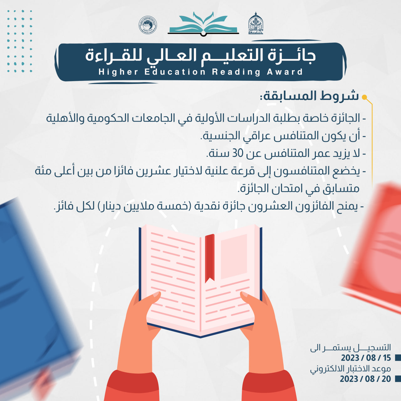 اعزاؤنا الطلبة موعدكم اليوم في تمام 9:00 صباحا مع اختبار جائزة التعليم العالي للقراءة*