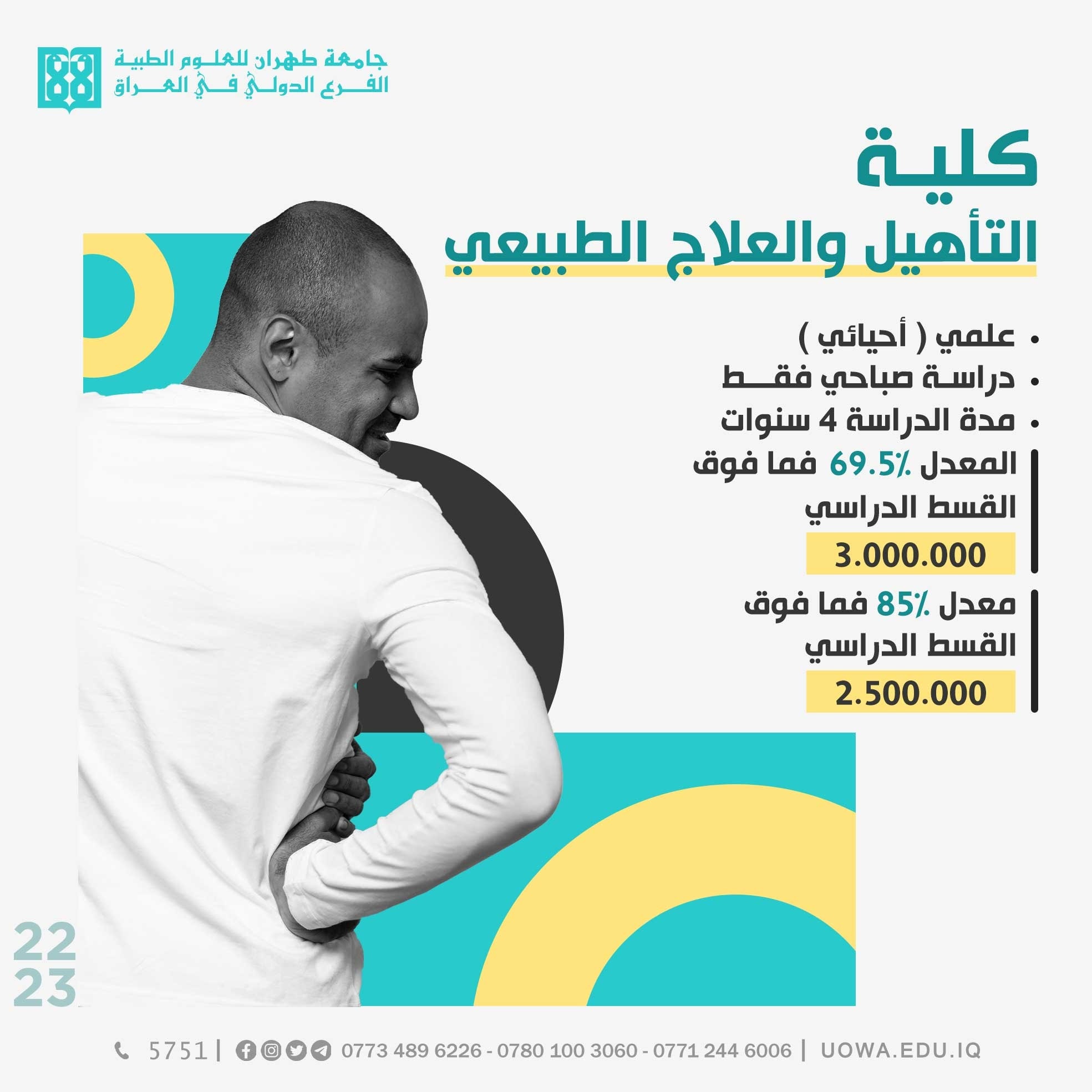 *كلية التأهيل والعلاج الطبيعي /صباحي فقط/الحد الادنى للتقديم 69.5