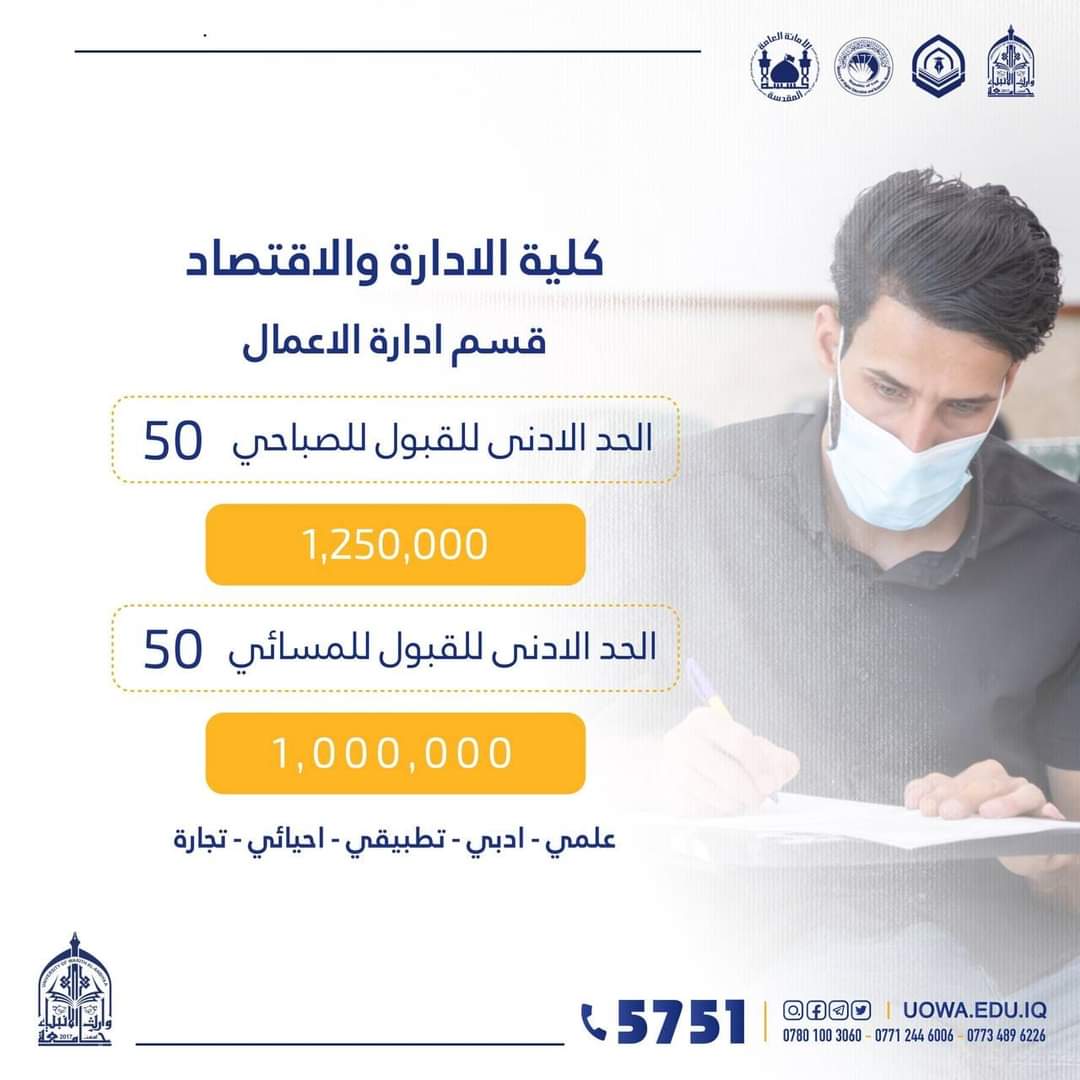 قبول المشمولين في الدراسة المسائية حصرا