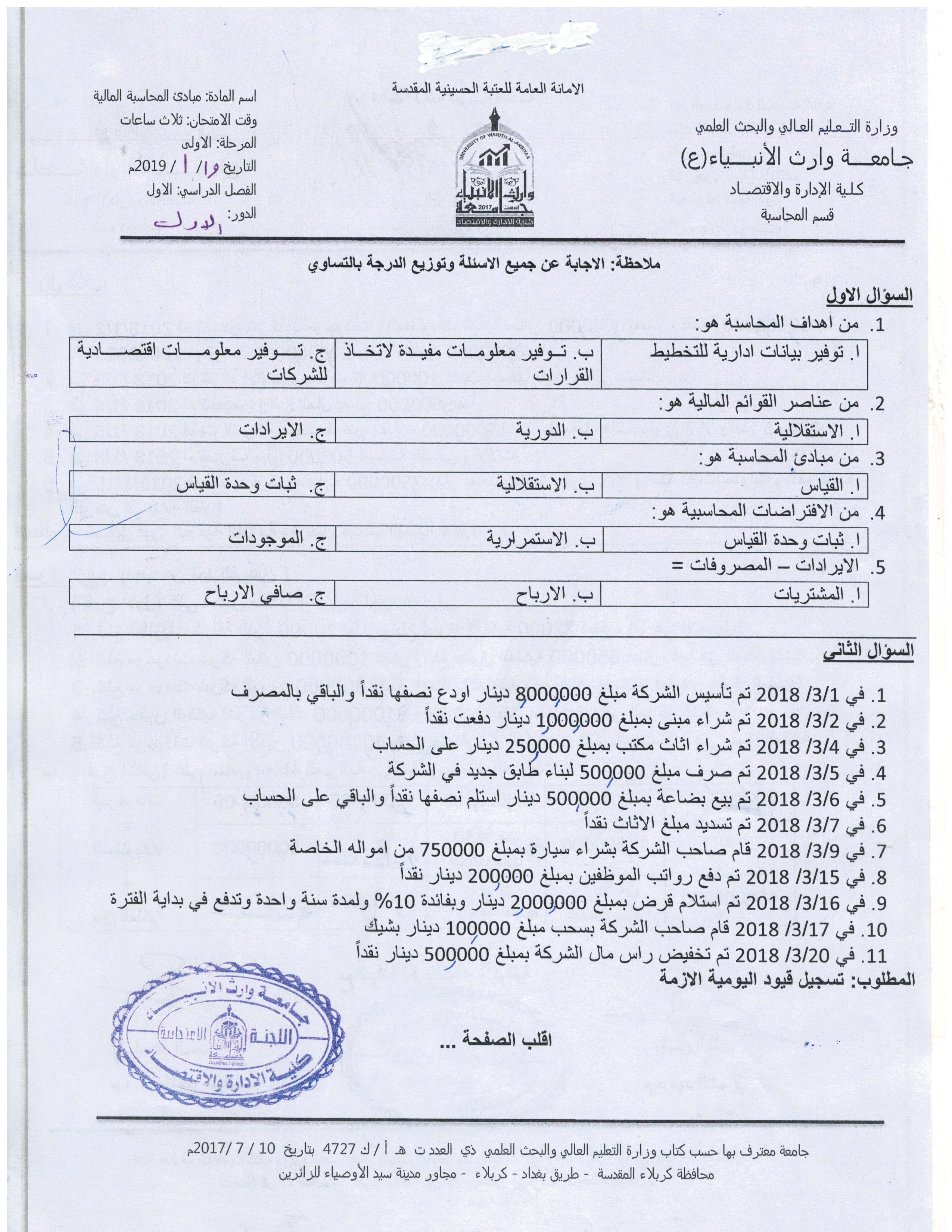 قامة عمادة الكلية ومجلسها الممثل بالاستاذ الدكتور عامر العطوي ود.نضال المالكي ود.فهد الشمري بتكريم الطلبة الاوائل للدراسة الصباحية والمسائية للمرحلتين الاولى والثانية وللقسمين المحاسبة وادارة اعمال في يوم الاحد 3/3/2019 وكذلك تم تكريم افضل طالبة محتشمة لكل قسم وقد حضر مجموعة من السادة التدريسيين والطلبة حفل التكريم