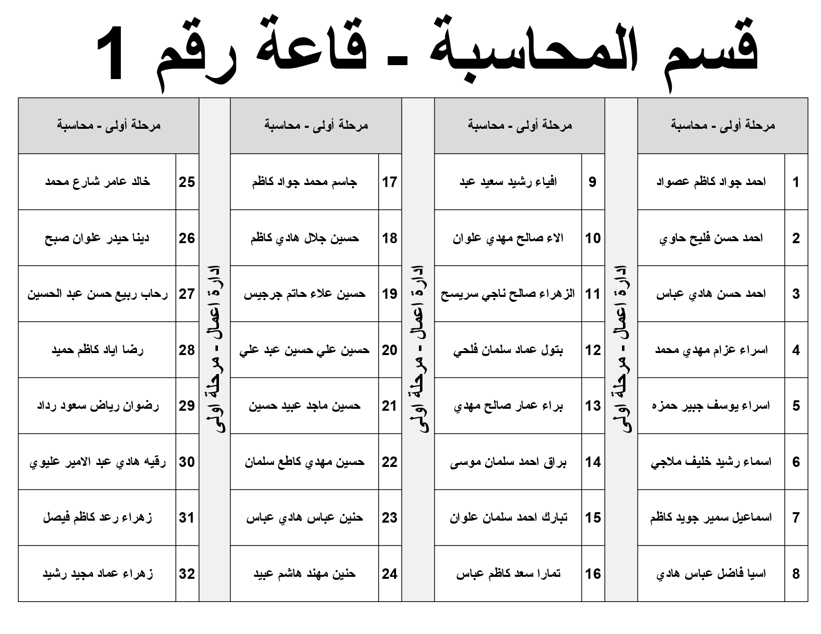 خارطة جلوس طلبة قسم المحاسبة المرحلة الاولى
