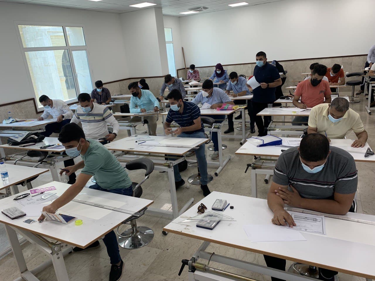 جانب من امتحان الحضوري لمادة الرسم الهندسي لطلبة المرحلة الأولى - قسم الهندسة المدنية يوم الاثنين المصادف 26/7/2021.