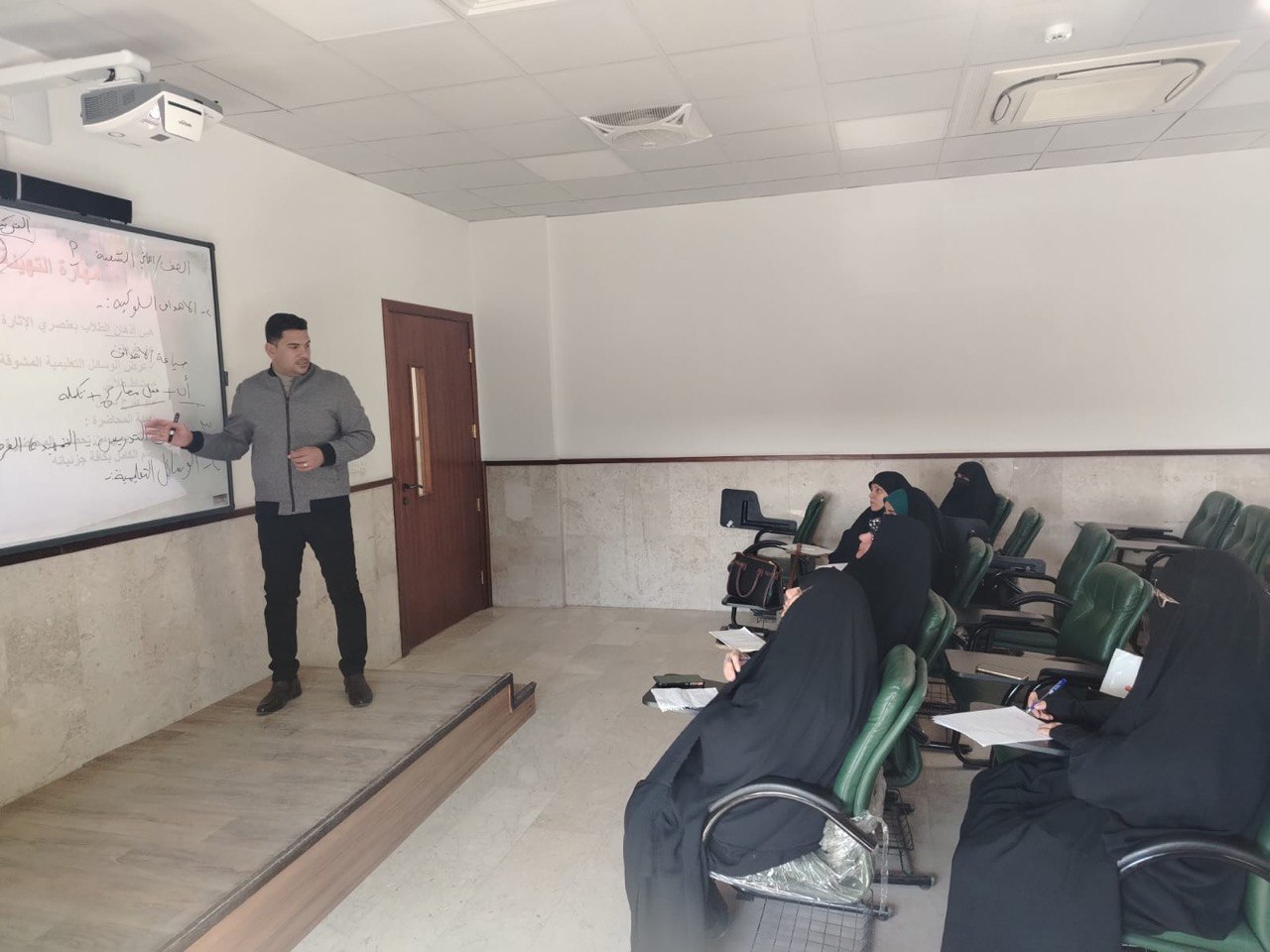 ألقى الورشة م. عباس عدنان كامل، حيث تناول أبرز التحديات التي يواجهها الطلبة خلال فترة التطبيق الميداني، بما في ذلك التعامل مع البيئة الصفية، وآليات إيصال المادة العلمية، والتفاعل مع الطلبة والإدارة المدرسية.