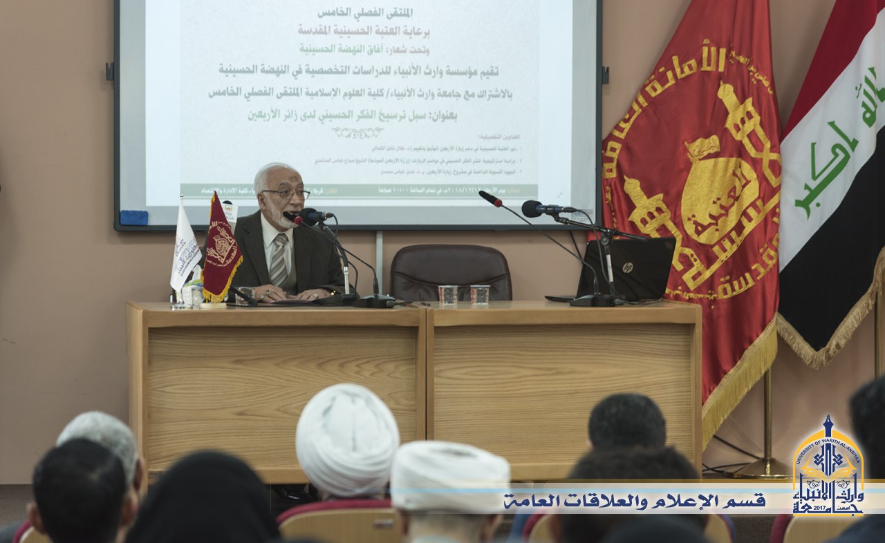برعاية عمادة كلية العلوم الاسلامية – جامعة وارث الانبياء اقيمت ندوة بعنوان ( سبل ترسيخ الفكر الحسيني لدى زائر الاربعين ) وقد تضمنت الندوة فعاليات متعددة بعد الافتتاح بالذكر الحكيم ابتدأ السيد الاستاذ الدكتور طالب حسين عودة رئيس جامعة وارث الانبياء بكلمة عن الثورة الحسينية والحث على السير بخط المنهج الحسيني وترسيخ المبادئ التي من اجلها قامت النهضة الحسينية