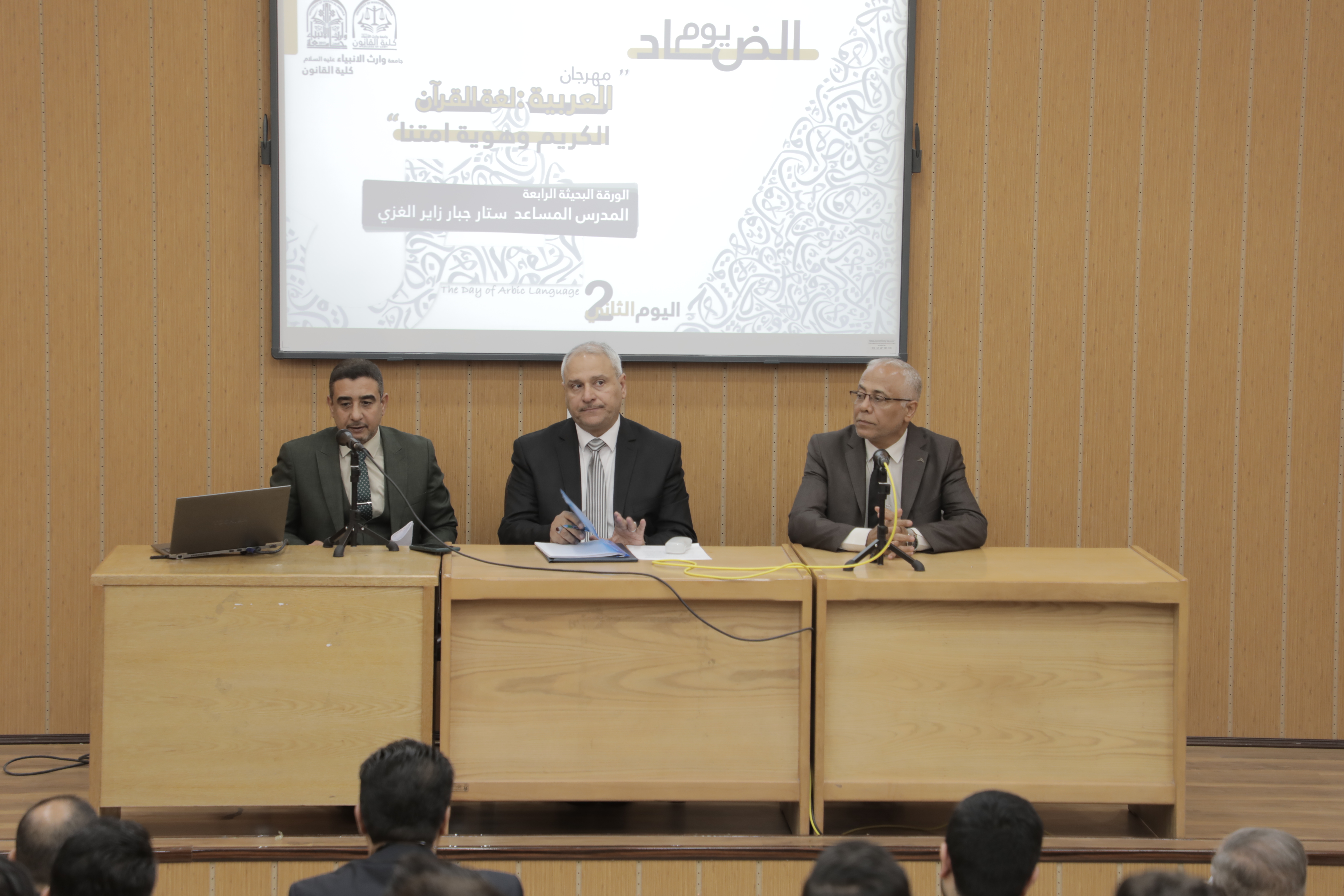 بمناسبة اليوم العالمي للغة العربية ،وبحضور السيد رئيس هيئة التعليم الجامعي الاستاذ الدكتور حيدر التميمي ،وبرعاية السيد رئيس الجامعة الاستاذ الدكتور ابراهيم الحياوي. اقامت جامعة وارث الانبياء(عليه السلام) ،وبالتعاون مع كليتي العلوم الإسلامية وكلية القانون مهرجانها الاولتحت عنوان( العربية:-لغة القرآن الكريم وهوية أمتنا) الذي يستمر لمدة يومين بحضور نوعي وكمي لأساتذة اللغة العربية والمهتمين بها والطلبة،حيث شهد المهرجان في يومه الاول ،طرح ورقتين بحثيتين لإثنين من كبار الباحثين في اللغة ،لبيان اهميتها ومفاصلها باعتبارها هوية امة من الواجب التمسك والاعتزاز بها.