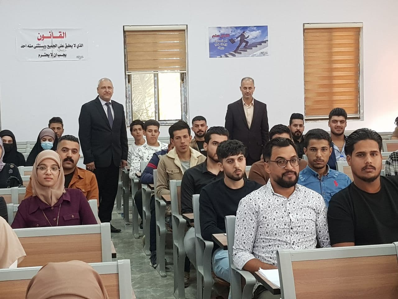 زار السيد عميد الكلية القاعات الدراسية حيث القى بعض التوجيهات بخصوص المحاضرات العلمية وحث الطلبة على الالتزام بالدوام والاجراءات الصحية من تلقي اللقاح للعبور الى بر الامان