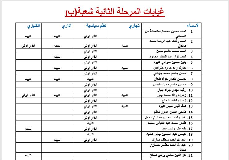 غيابات المرحلة الثانية