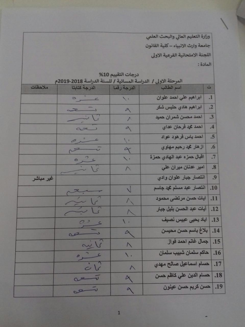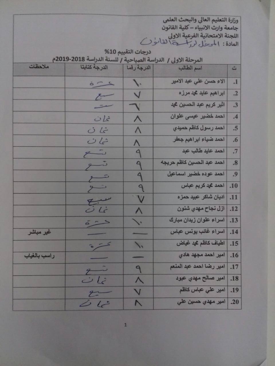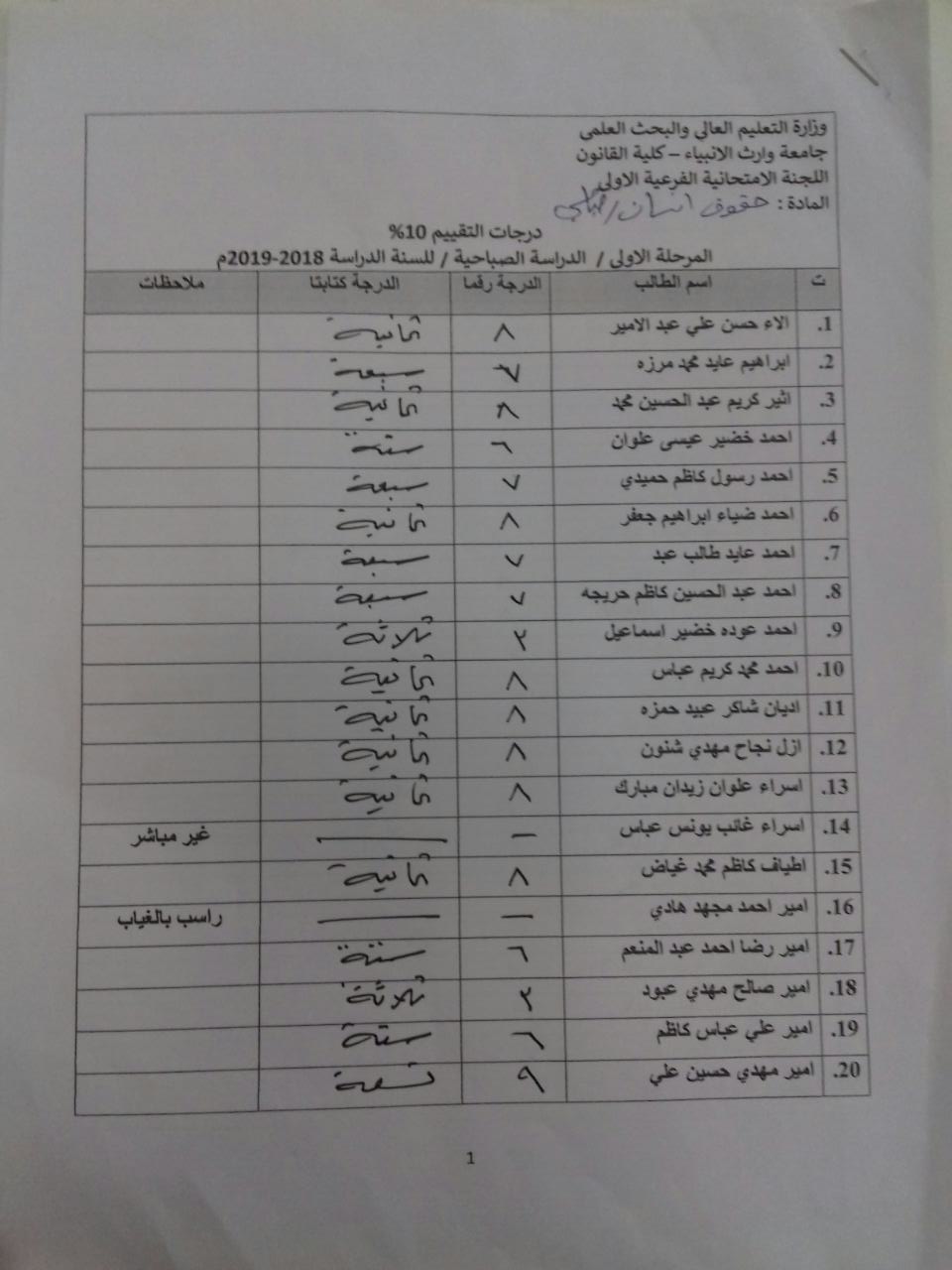 درجات الشفوي (المرحلة الاولى)