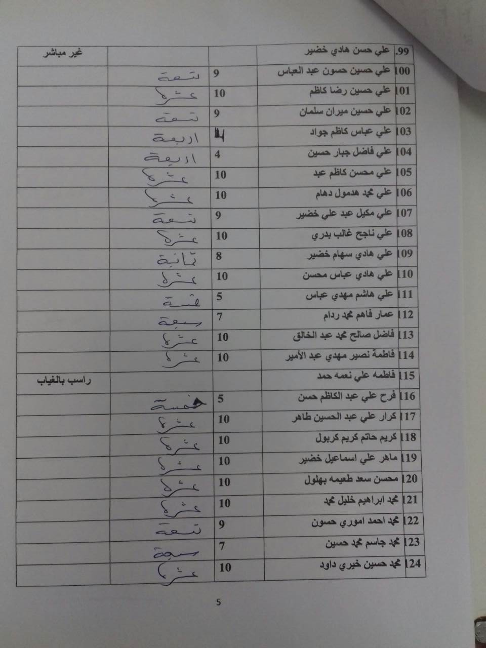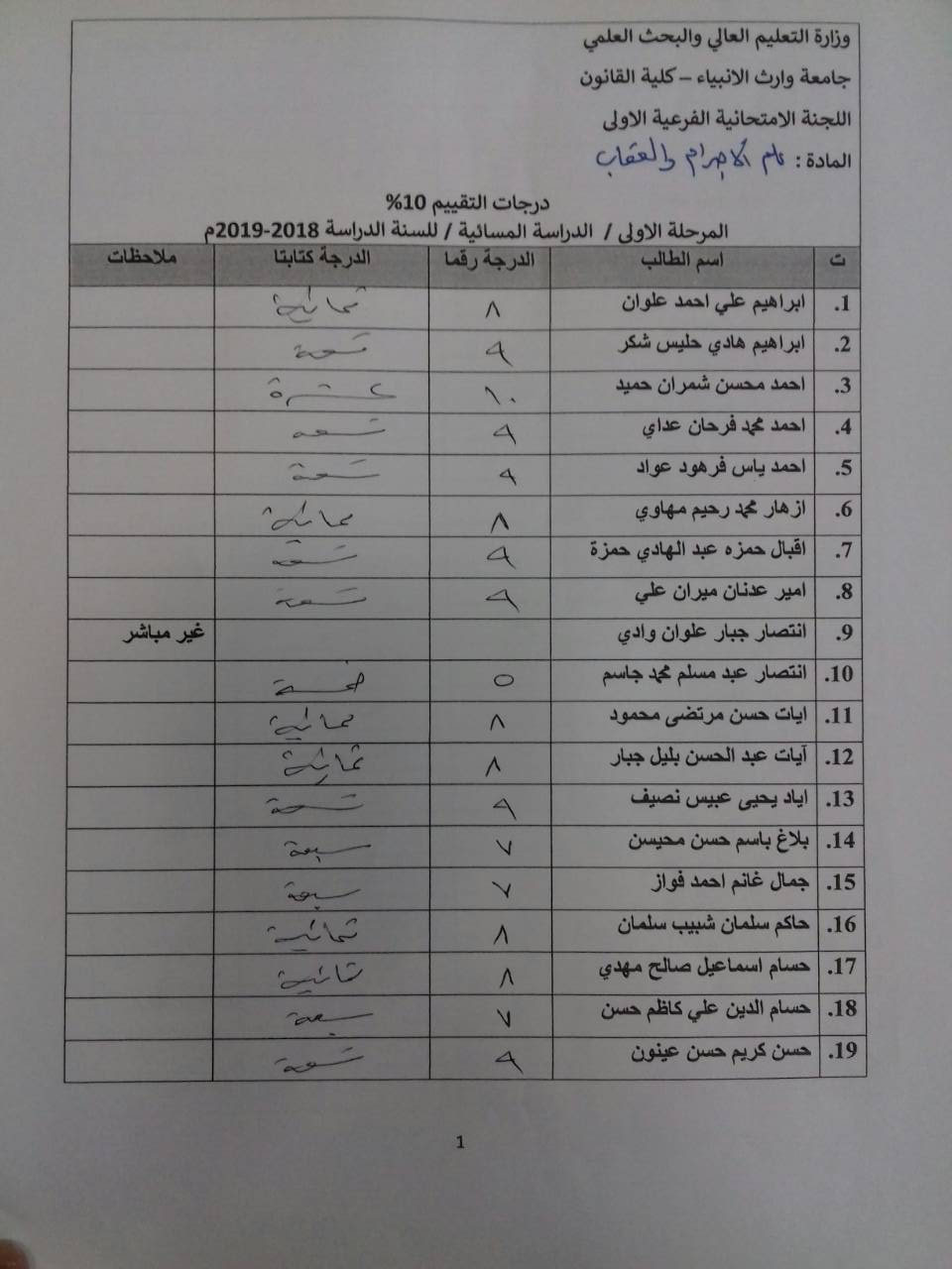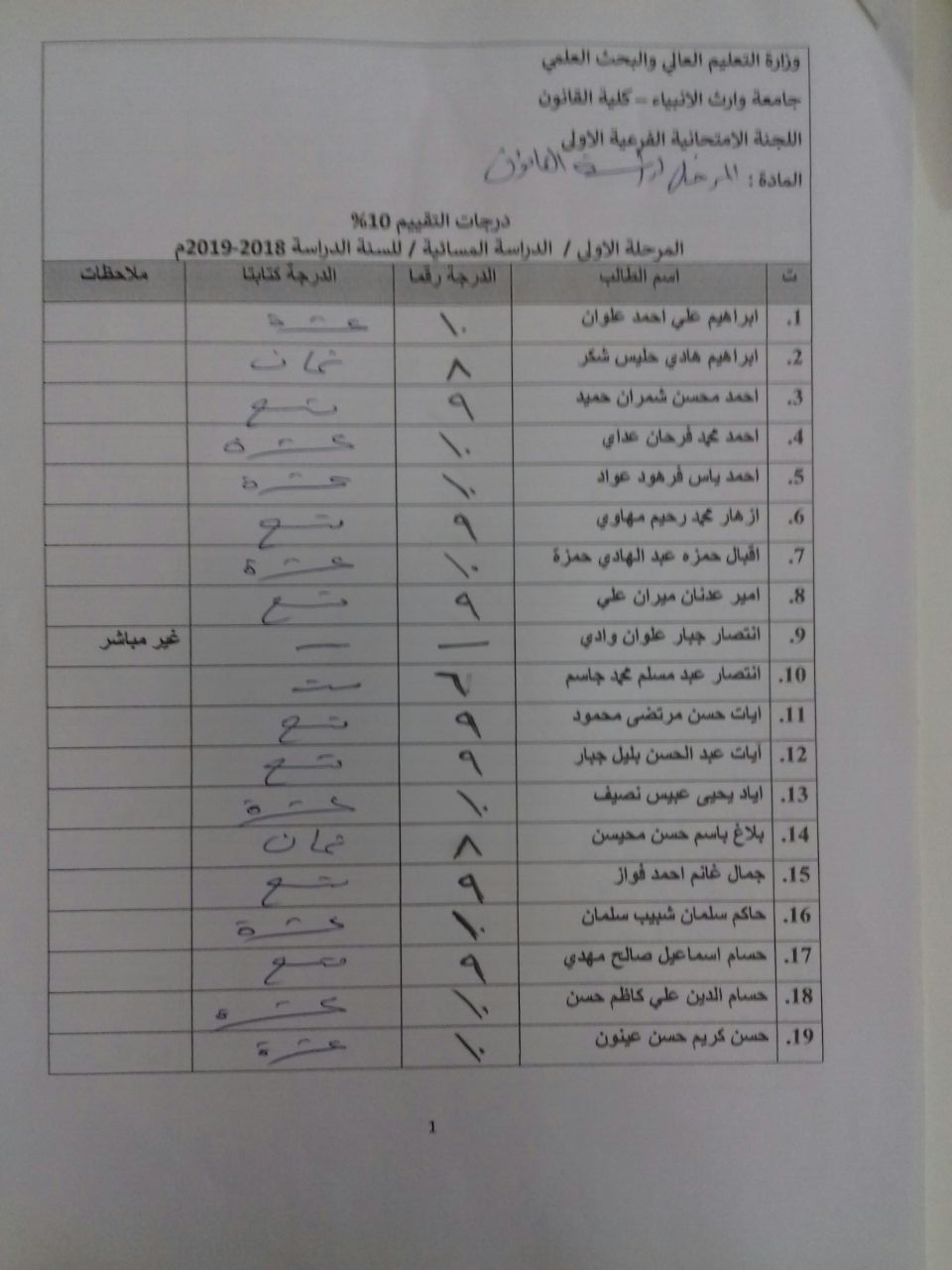 درجات الشفوي (المرحلة الاولى)