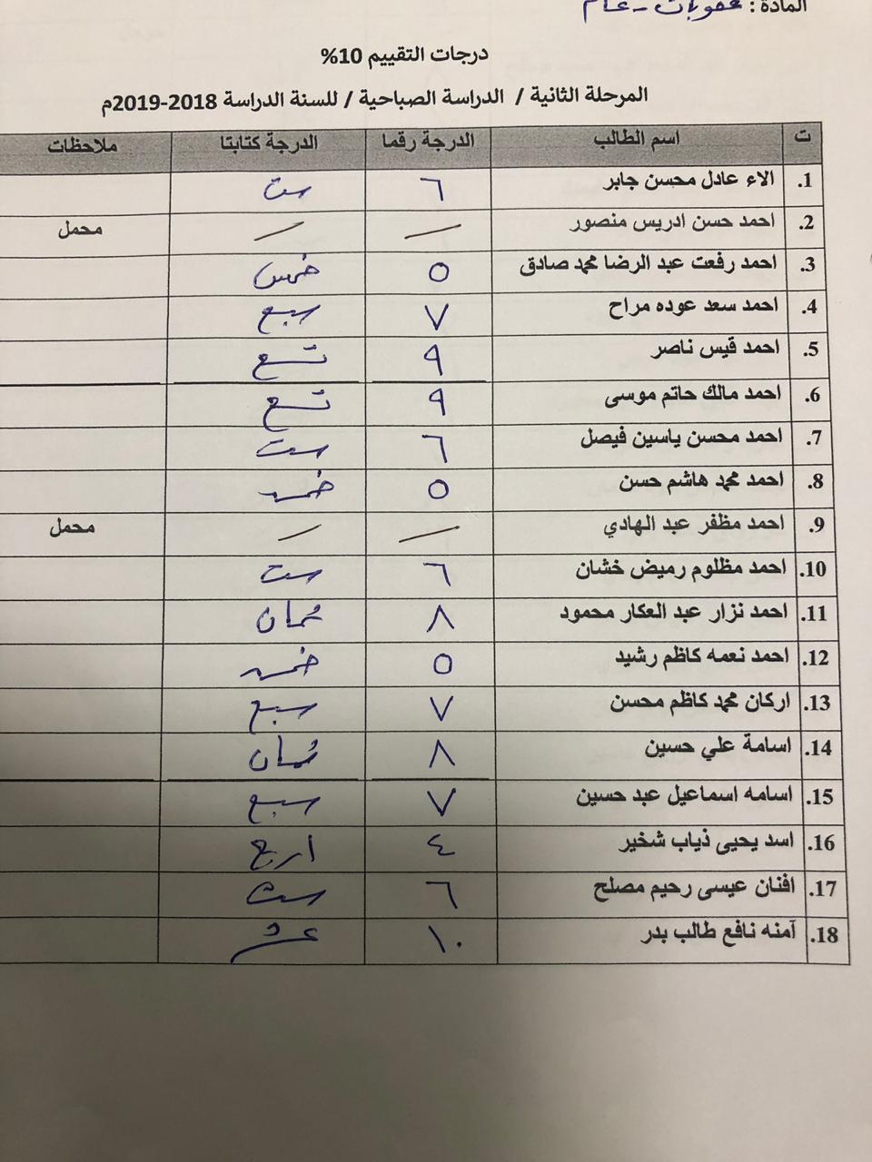 درجات الشفوي (المرحلة الثانية)
