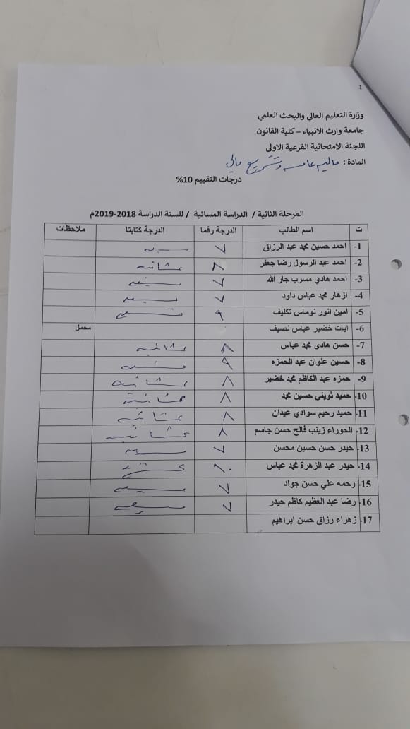 إجراء الامتحان المشترك لتعزيز الرصانة العلمية في قسم العلوم المالية والمصرفية الاسلامي كلية العلوم الاسلامية