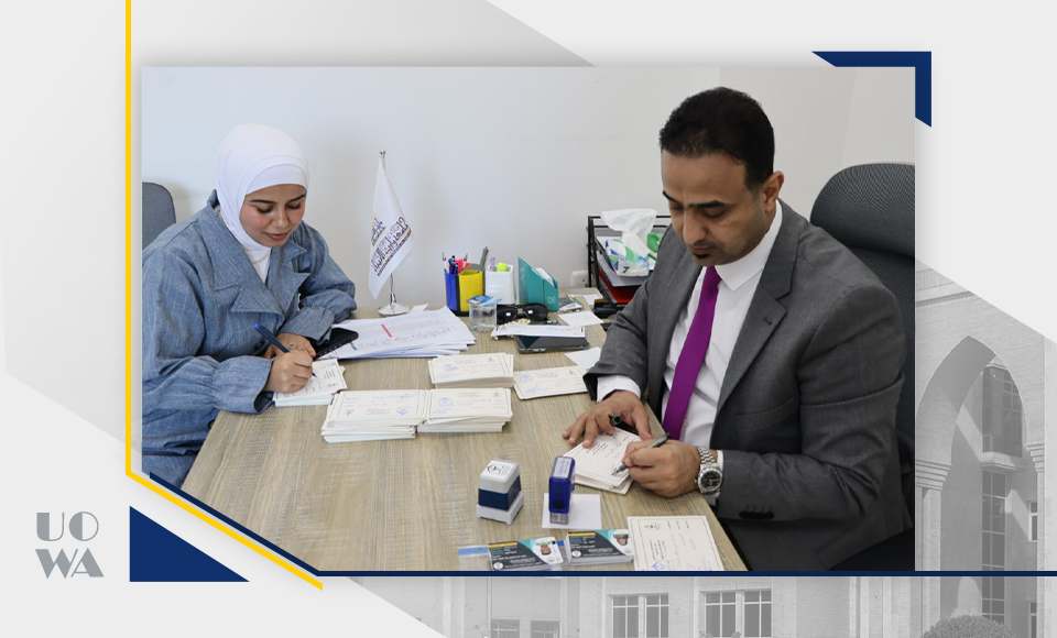 أعلن قسم شؤون الطلبة في كلية الطب – جامعة وارث الأنبياء عليه السلام عن إصدار البطاقات الامتحانية للفصل الدراسي الحالي، ومباشرة تسليمها إلى الطلبة، وذلك ضمن الاستعدادات الجارية للامتحانات النهائية.