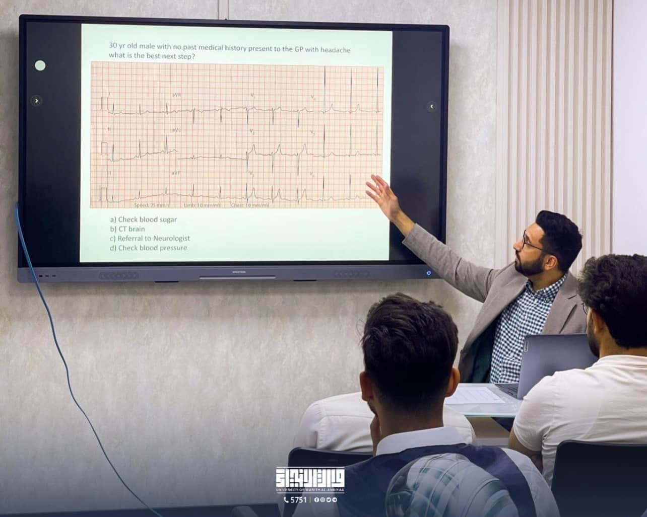 استضاف المركز الوطني لتقييم الكفايات الطبية ورشة عمل تدريبية متخصصة في تفسير رسم القلب الكهربائي (ECG)، استهدفت طلبة كلية الطب المرحلة الرابعة، والخامسة في جامعة وارث الأنبياء(عليه السلام) وطلبة المرحلة الخامسة والسادسة في جامعة كربلاء. تأتي هذه الورشة ضمن سلسلة من البرامج التدريبية التي تهدف إلى تعزيز المهارات العملية لطلبة الطب في تشخيص الأمراض القلبية باستخدام أحدث التقنيات الطبية.تميزت الورشة بتركيزها على الجانب العملي من خلال أجهزة المحاكاة الطبية الحديثة التي يمتلكها المركز، والتي تحاكي الواقع السريري وتوفر تجربة تعليمية تفاعلية ومتكاملة للطلبة. وتعتبر هذه الأجهزة جزءًا من الجهود المستمرة للمركز لتعزيز جودة التعليم الطبي في العراق من خلال تقديم بيئة تدريبية حديثة تدعم التعليم العملي.