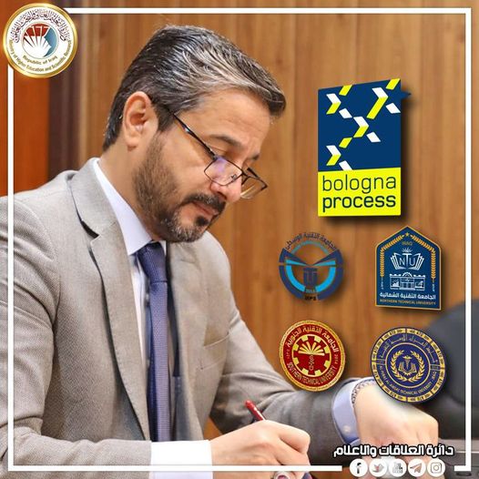 التزاماً برؤية التطوير والتأهيل لمجالات التعليم والتدريب التقني والمهني وتأكيدا على مخرجات التعاون المباشر مع منظمة اليونسكو .. قرر وزير التعليم العالي والبحث العلمي الدكتور نعيم العبودي الشروع باعتماد نظام (Bologna Process) في أربعة برامج على مستوى المراحل الأولى في الدراسات الأولية في الجامعات التقنية ابتداء من العام الدراسي الحالي 2023/2022 تمهيدا لتطبيق النظام التعليمي الجديد في الجامعات كافة.