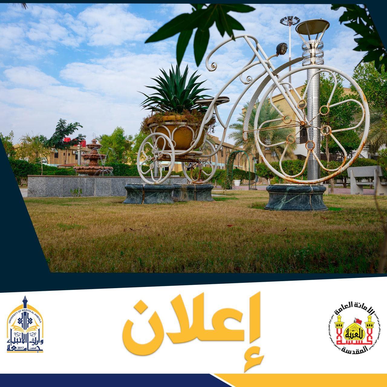 تعلن جامعة وارث الأنبياء(عليه السلام) عن مزايدة إيجار حقوق (التصوير) في الجامعة وستجري المزايدة بتاريخ 26/1/2022 فعلى الراغبين بالدخول في المزايدة مراجعة قسم الشؤون القانونية في الجامعة في موعد أقصاه 25/1/2022 للاطلاع على شروط المزايدة مستصحبين معهم 1. البطاقة الوطنية أو هوية الأحوال المدنية، شهادة الجنسية، بطاقة السكن ،البطاقة التموينية2. دفع مبلغ الاشتراك في المزايدة في قسم الشؤون المالية البالغ قدره(25,000)الف دينار غير قابل للرد.