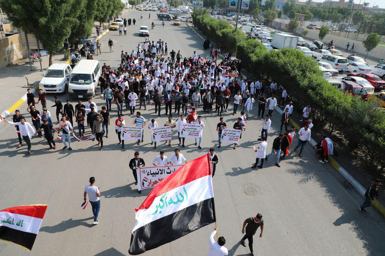شارك بعض اعضاء الهيئة التدريسية لكلية العلوم الاسلامية / جامعة وارث الانبياء في المظاهرات السلمية مع الطلبة الاعزاء دعماً منهم لتحقيق المطالب الشعبية والقضاء على الفساد .