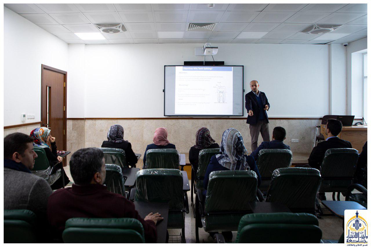 ضمن النشاطات العلمية لكلية الهندسة في جامعة وارث الانبياء(عليه السلام)، اقام قسم هندسة طب الحياة ندوة علمية بعنوان:(ميكانيكية الكسر في الأسنان البشرية)(Fracture mechanisms in human teeth)