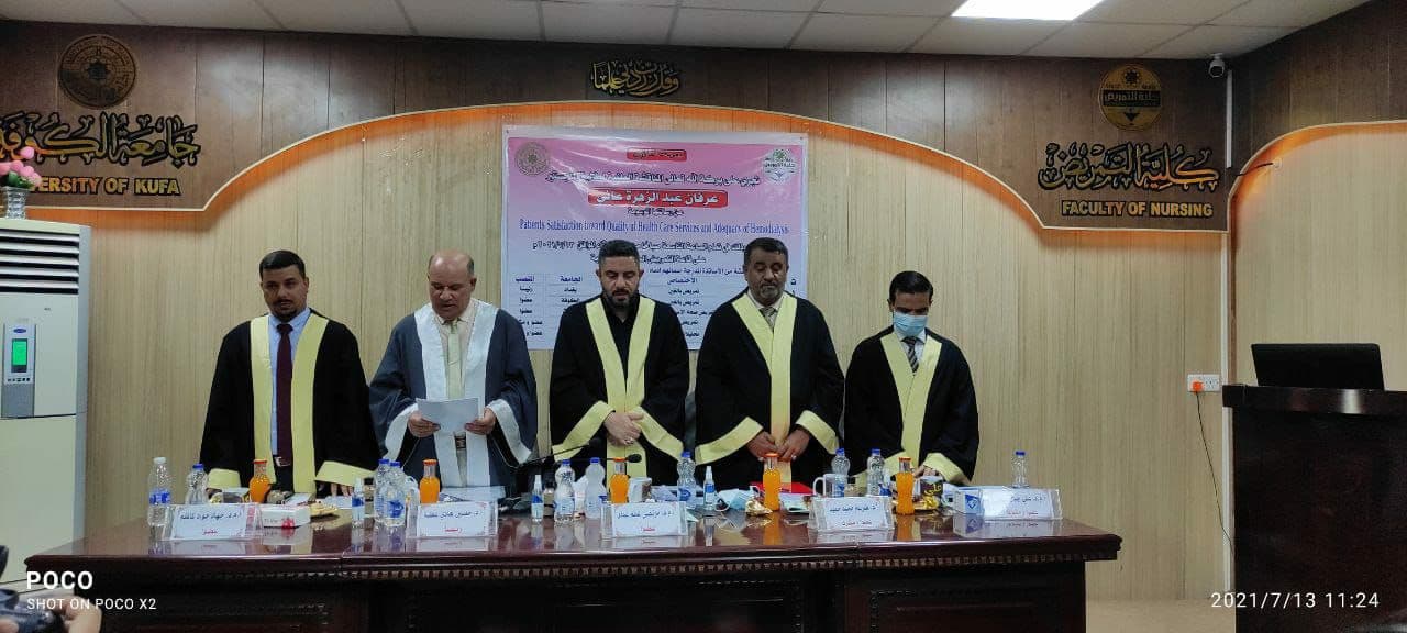 شارك الاستاذ المساعد الدكتور مرتضى غانم الجبوري عميد كلية التمريض بعضوية لجنة مناقشة أطروحة رسالة ماجستير في كلية التمريض جامعة الكوفة والموسومة بـ " رضا المرضى حول جودة الخدمات الصحية وجودة النفاذ الدموي المقدمه في وحدة الغسل الكلوي"