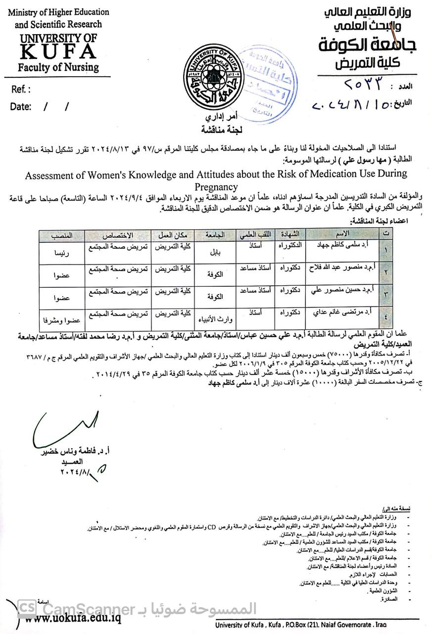 شاركت عميد كلية العلوم بعضوية اللجان لمناقشة اطروحة دكتوراه