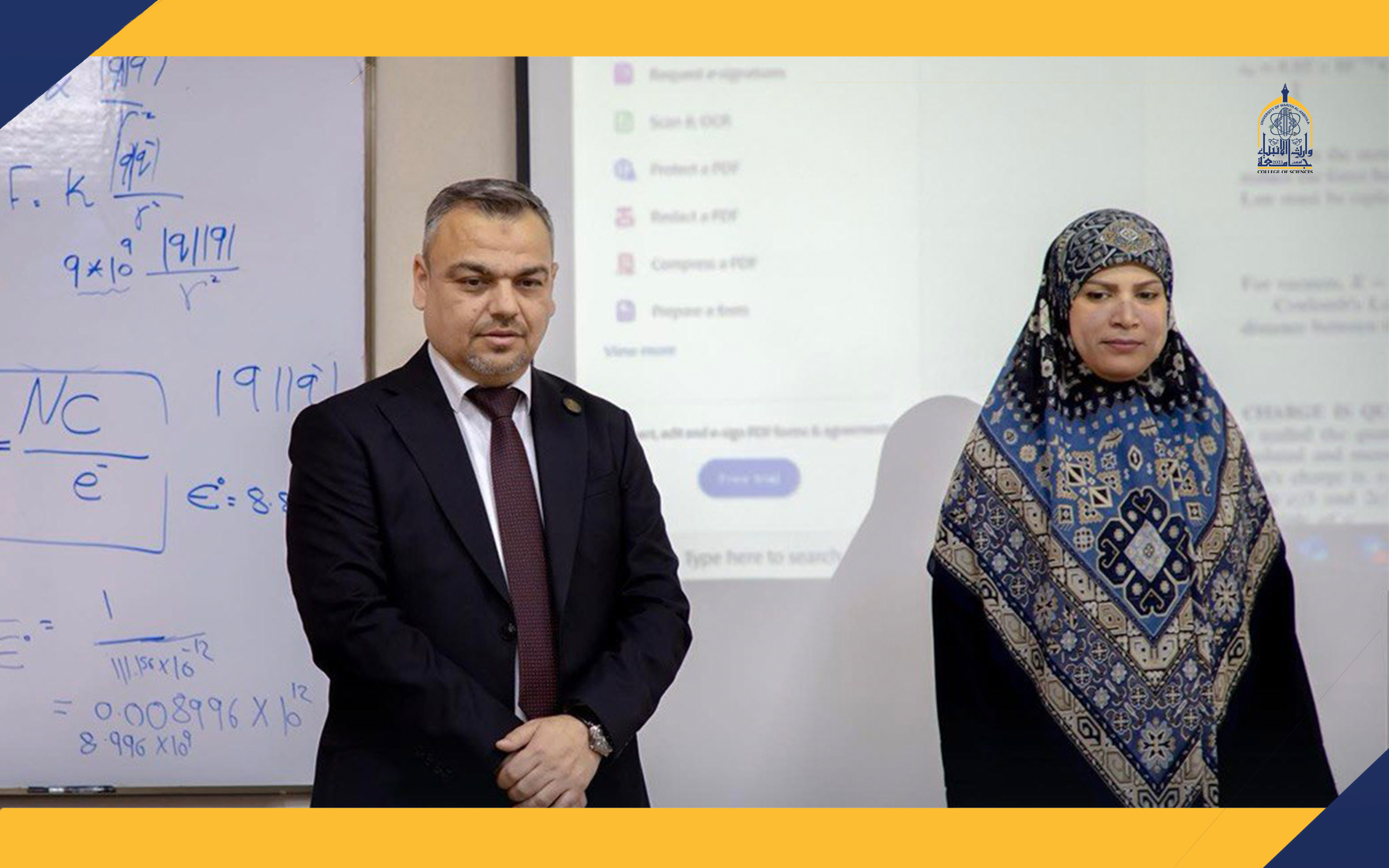 خلال الجولة، رافقته الأستاذ المساعد الدكتورة شيماء حسين نوفل، عميد كلية العلوم، والأستاذ المساعد الدكتور حيدر محمد الغانمي، المعاون الإداري لعميد كلية العلوم.