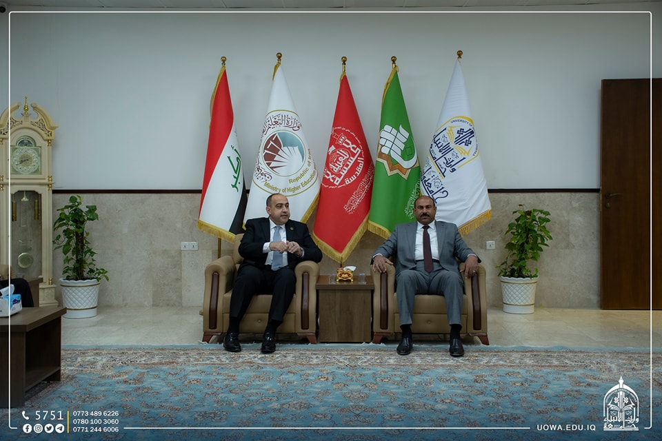 استقبل السيد رئيس الجامعة الاستاذ الدكتور ابراهيم الحياوي وفد رئاسة الجامعة التكنلوجية برئاسة الاستاذ الدكتور احمد الغبان رئيس الجامعة وجاءت هذه الزيارة لتعزيز التعاون العلمي بين الجامعتين ومتابعة تنفيذ بنود الاتفاقية.