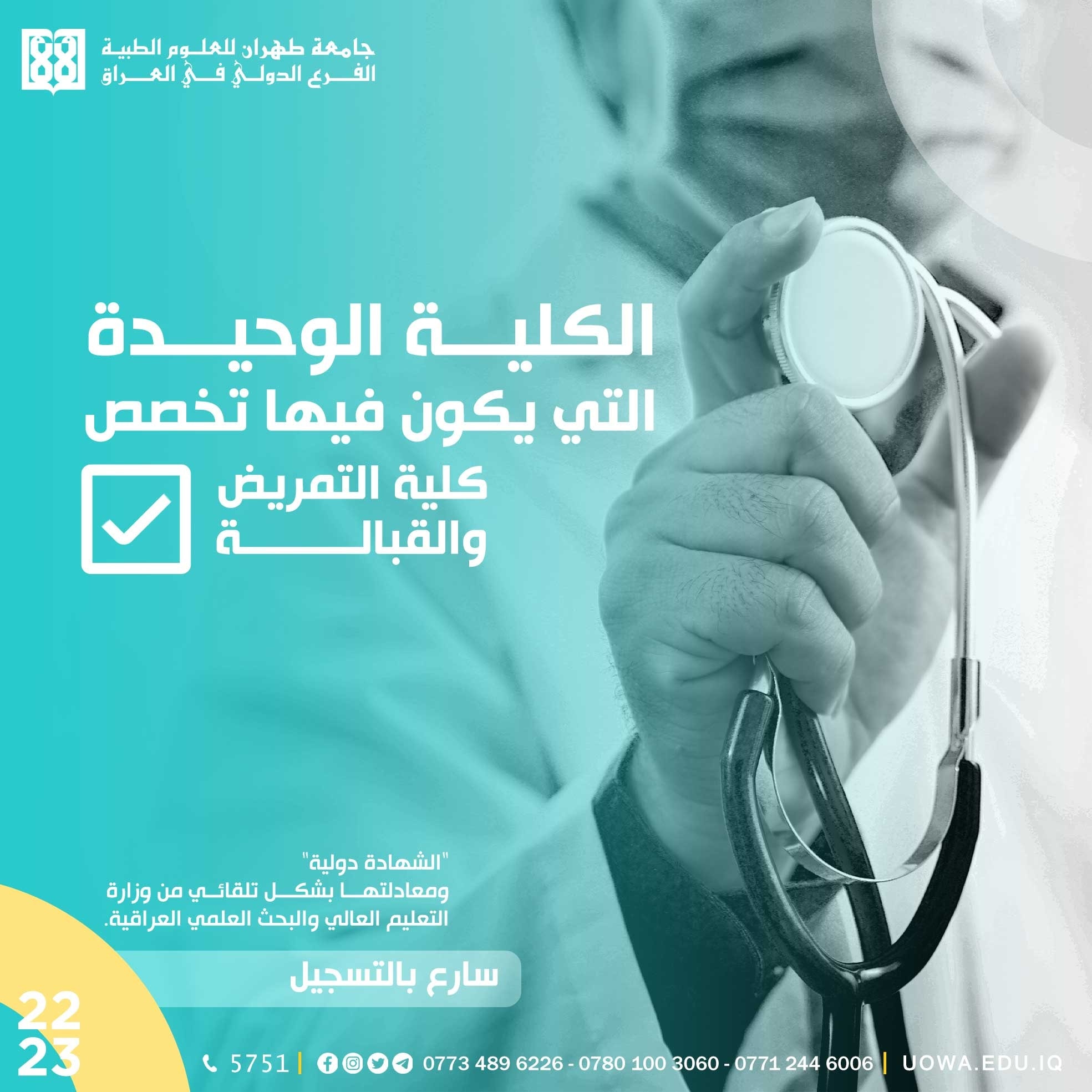 اعزاءنا الطلبة اغتنموا الفرصة باختياركم "كلية التمريض والقبالة في جامعة السبطين الفرع الدولي لجامعة TUMS "