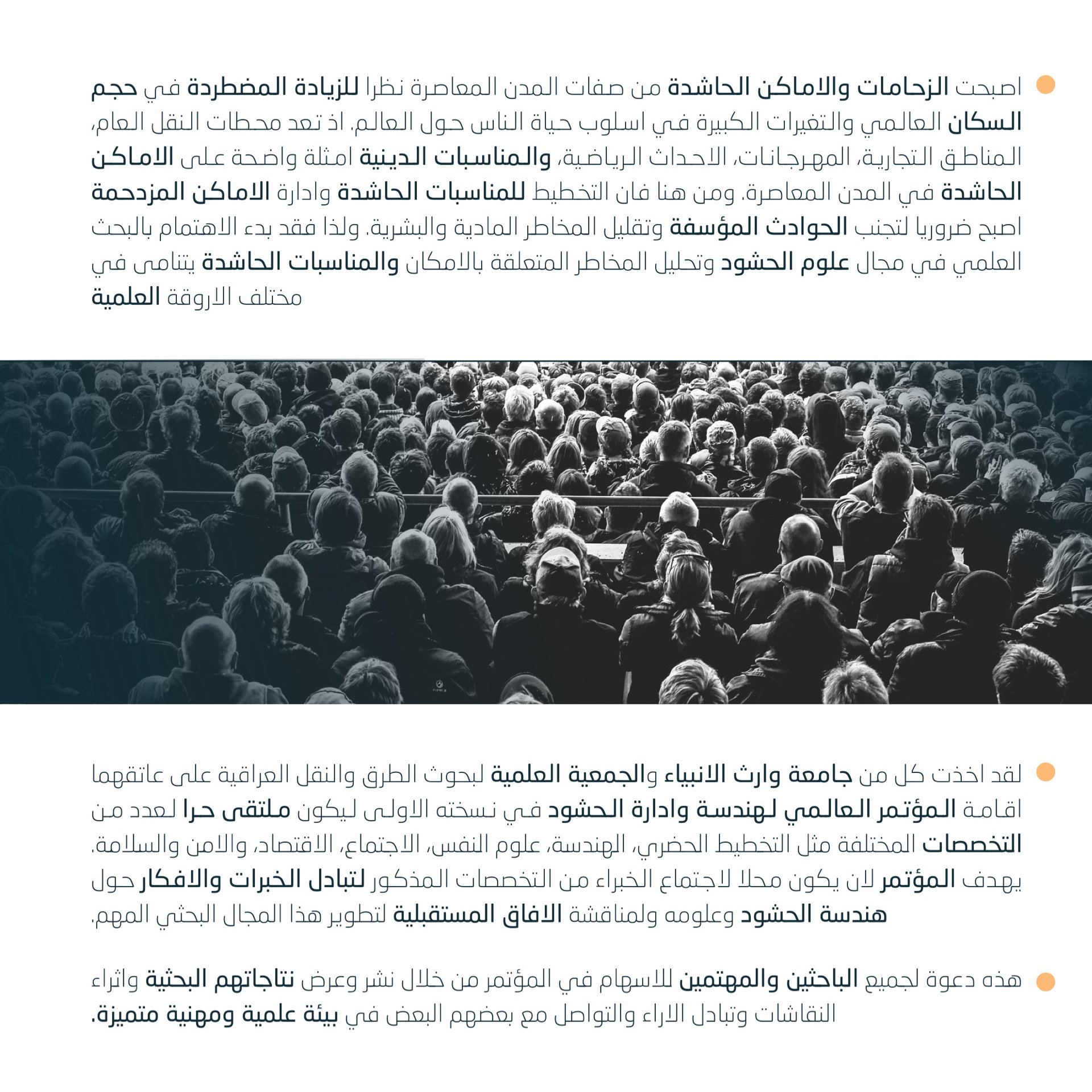 لاول مرة في العراق المؤتمر العالمي الاول لهندسة وادارة الحشود