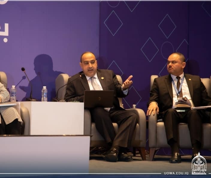 Professor Dr. Ibrahim Al-Hayawi, the university president, presented an explanation of the "Warith Scientific Award" during the scientific research axis. This award is organized annually by the university to support researchers from various Iraqi universities and is not limited to the university's researchers alone.