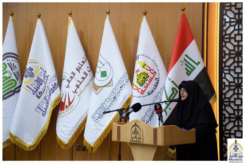 In the presence of the Head of the Higher Education Department at the Holy Shrine of Imam Hussein, Mr. Afdal Al-Shami, the President of the University of Warith Al-Anbiyaa (Peace Be Upon Him), Professor Dr. Taleb Hassan Musa, and the President of Al-Zahra University (Peace Be Upon Her), Professor Dr. Zainab Al-Sultani, along with teaching staff from both universities and distinguished guests, the first day of the inaugural cultural week celebrating the birth of Lady Fatimah Al-Zahra (Peace Be Upon Her) commenced. The event, organized by the Festivals and Conferences Department under the Public Activities Division at the Holy Shrine of Imam Hussein in collaboration with the University of Warith Al-Anbiyaa (Peace Be Upon Him) and Al-Zahra University (Peace Be Upon Her), began with the recitation of verses from the Holy Quran, followed by speeches from the General Secretariat of the Holy Shrine and the presidencies of both universities. The event concluded with performances by poets and performers, praising the occasion and the Ahlul Bayt (Peace Be Upon Them).