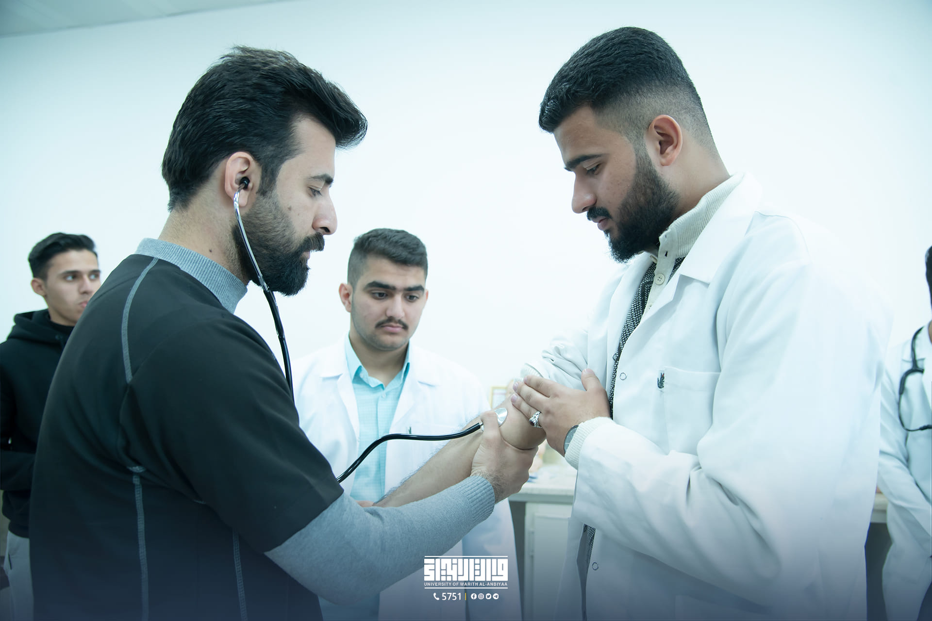 In the presence of the Dean of the College, Professor Dr. Ali Abd Saadoun, the College of Medicine at the University of Warith Al-Anbiyaa (Peace be upon him), in collaboration with the Health Department at the Holy Shrine of Imam Hussain, organized the "Intensive Training Course for Medical Units during the Blessed Shaabanian Pilgrimage." The course was attended by a number of students from the College of Medicine and the College of Nursing who volunteered to serve the visitors coming to the holy city of Karbala.