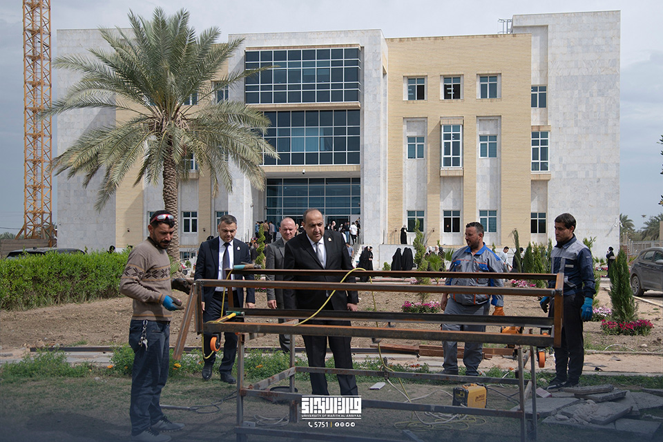 Professor Dr. Ibrahim Al-Hayawi, the President of the University of Warith (peace be upon him), led a field tour within the university premises, accompanied by the Assistant Scientific Dean, Professor Dr. Waqad Al-Mousawi, to inspect the urban and development projects underway within the university and to monitor the progress of these projects.