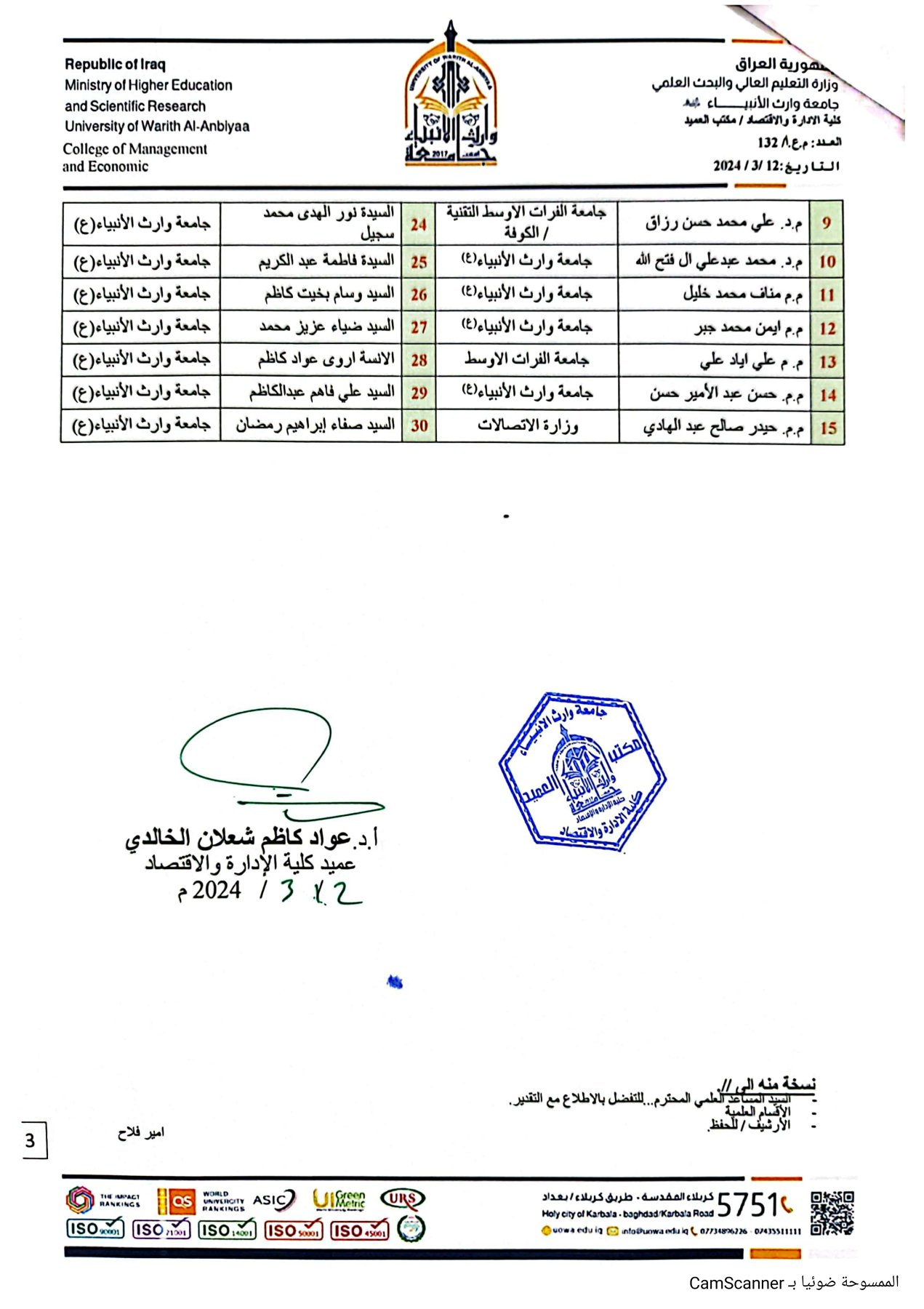 An Iraqi university recognized by the Iraqi Ministry of Higher Education and Scientific Research under Ministerial Order No. (T.A./K 4727 in the year 2017)
